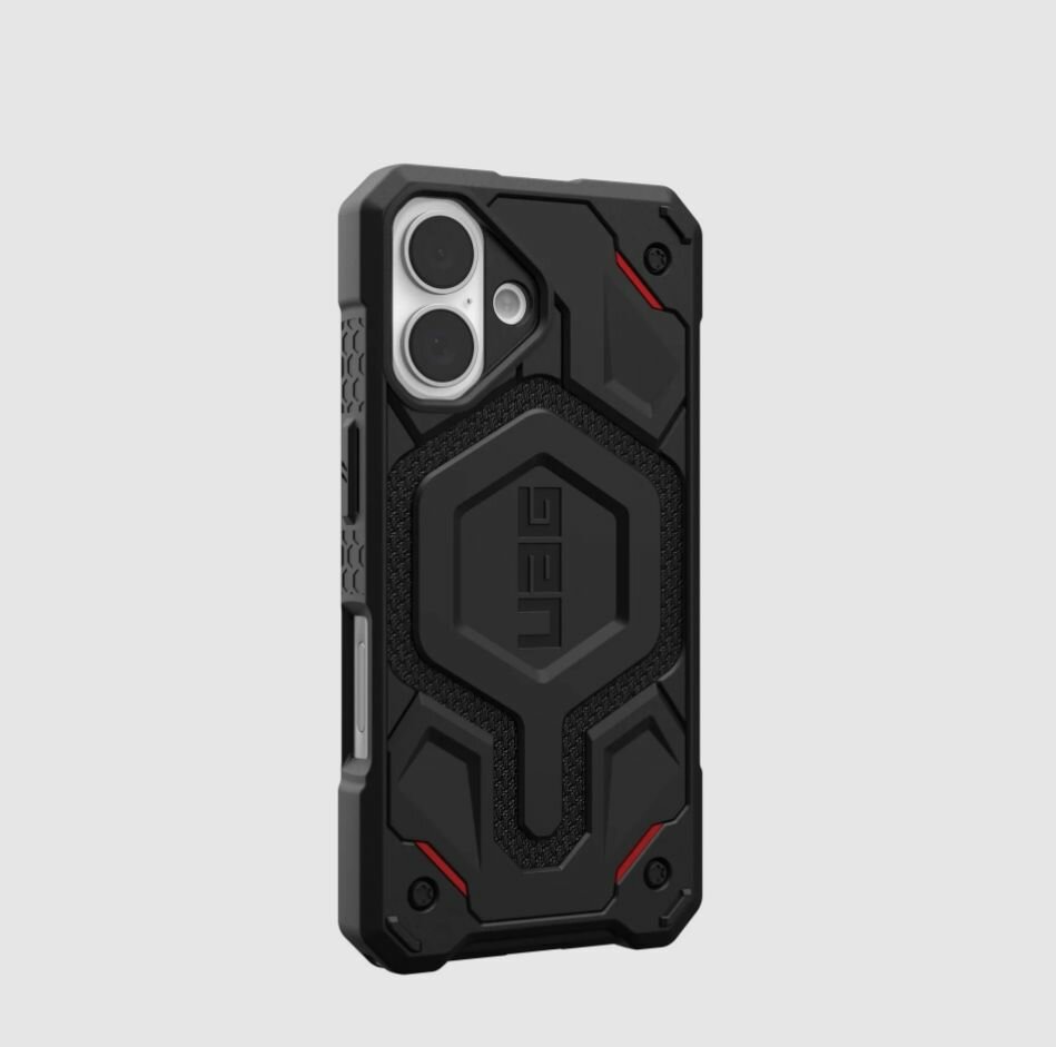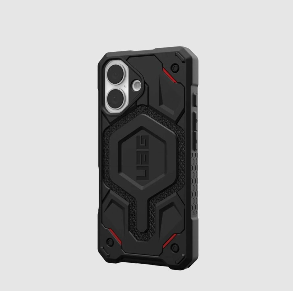 Чехол с поддержкой MAGSAFE UAG Monarch Pro для iPhone 16 6.1″, цвет чёрный (Kevlar-Black): сравнение цен, характеристики, фото, актуальное наличие и цены.