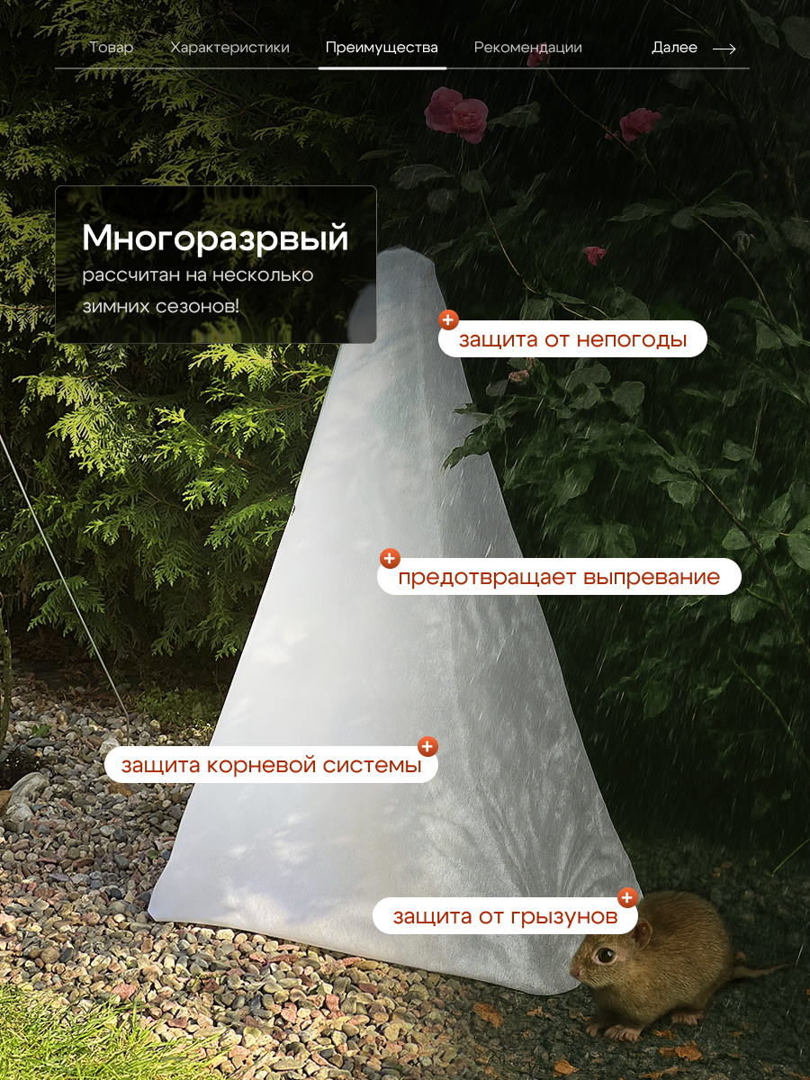 С приходом зимы садоводы и любители растений сталкиваются с необходимостью обеспечить защиту своих зеленых друзей от холода и неблагоприятных погодных условий. Одним из эффективных способов сохранить растения в зимний период является использование укрытия для растений на зиму. В этой статье мы рассмотрим, как правильно выбрать и установить укрытие для роз на зиму, а также для других растений, таких как туй, и какие материалы для этого можно использовать. Первым шагом в подготовке укрытия для растений на зиму является выбор подходящего материала. Существует множество вариантов, каждый из которых имеет свои преимущества и недостатки. Чехлы для укрытия растений на зиму, в комплекте 3 шт из спанбонда. Бескаркасный чехол мешок предназначен для защиты саженцев, многолетних садовых и декоративных кустов (гортензии, роз), молодых и хвойных деревьев (можжевельник, саженец туи) от заморозков, снегопадов, ожогов и обледенений. Белый защитный чехол без каркаса изготовлен из нетканого укрывного материала спанборд плотностью 70 гр/м. Зимнее укрытие работает как тент или полотно, не пропускает морозный воздух внутрь даже при сильном ветре и вьюге. Легкий дышащий нетканный материал мешка агроспан бережно укутывает растение, сохраняя естественное направление роста ветвей и пропуская достаточно солнечного света. Геотекстиль создаёт благоприятный микроклимат для растений, препятствует появлению грибка и плесени. Защита стволов от мороза и от града достигается благодаря постоянно сухой атмосфере за счет паропроницаемого материала спандбонд. Также укрывной материал для сада и дачи, ткань препятствует доступу к кустарникам грызунам и насекомым. Еще одно важное преимущество агроволокна заключается в том, что он способствует длительному сохранению влаги в почве. Спанбод также рекомендуется к использованию на растениях после их пересадки. Защитные мешочки на зиму бережно, укутывают растения на грядке, в огороде или саду на даче.