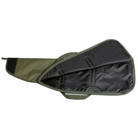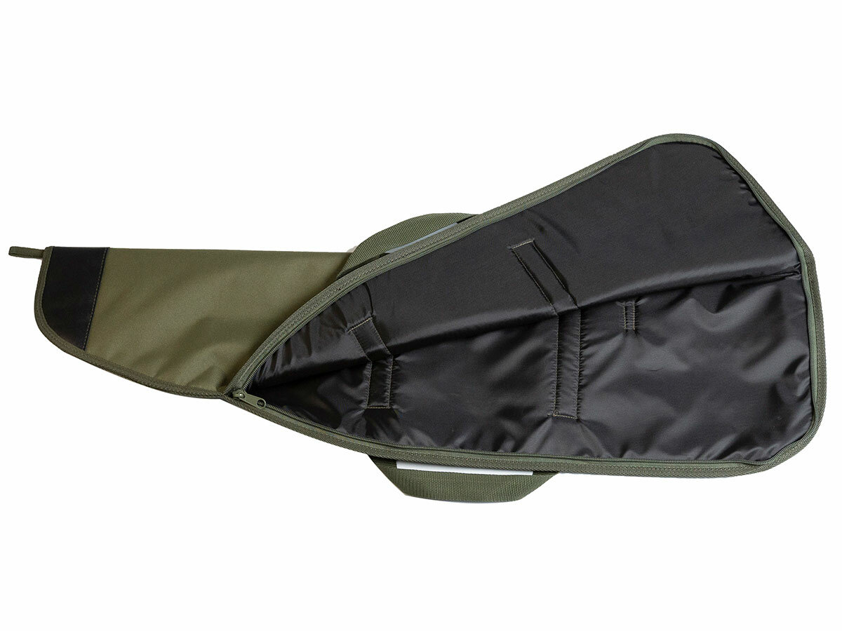 Изготовлен из износостойкого капрона с подкладкой из пенополиэтилена. Пенопропилен, из которого изготовлена прокладка футляра, обладает высокой прочностью, термостойкий, водостойкий, отличается повышенной химической стойкостью и сопротивлению старению. В данном изделии применен, обладающий высокой амортизирующей способностью атактический, ячейстый, газонаполненный, материал. Изделие прошито прочными лавсановыми нитями, укреплено износостойкой синтетической тесьмой. Переноска футляра для оружия осуществляется ручкой или на плечевой лямке (ремне). Изменение длины ремня - двухщелевой пятистенной пластиковой пряжкой. Ручка и ремень изготовлены из прочной нейлононовой стропы (Paracord). Рукоятка кофра выдерживает большую нагрузку, так как лента прошита вокруг него. Нос чехла отделан (укреплен) искусственной кожей (замшей). Чехол закрывается на молнию с одним замком. Также на чехле имеется специальная петля, которую удобно использовать при хранении чехла, подвешивая его.