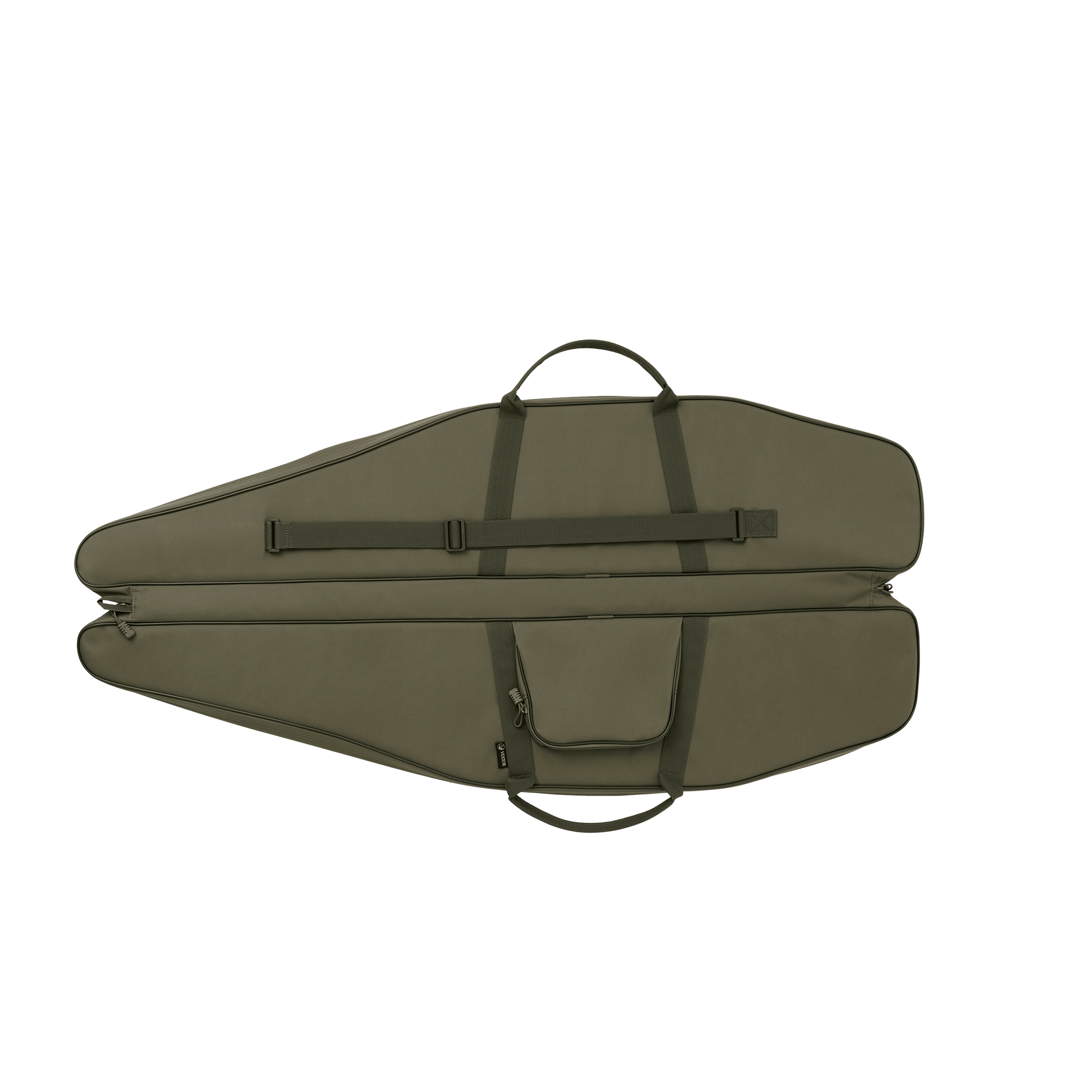 Характеристики: * Мягкий чехол из капрона с поролоном и тканевой подкладкой предназначен для охотничьей винтовки с оптическим прицелом * Чехол выполнен из плотной и износоустойчевой ткани * Чехол содержит поролон и подкладку смесового материала, которые защищают оружие от царапин и других механических повреждений * Также имеется вшивной сумочный кант-кедер (полиэтилен) для придания формы каркасу изделия, для увеличения прочности шва, и в качестве декоративного элемента * Переноска футляра для оружия осуществляется ручками (для удобства переноски могут соединяться вместе), которые выдерживают большую нагрузку, так как прошиты вокруг сумки * С одной стороны чехла находится регулируемый по длине ремень, который позволяет переносить чехол не только за ручки в горизонтальном положении, но и на одном плече вертикально * Ремень и ручки выполнены из прочной нейлононовой стропы (paracord) * Снаружи находится небольшой карман для нужных мелочей, который закрывается молнией с одним замком * Закрывается основное отделение на молнию с двумя замками, которая частично защищена от дождя и грязи специальными накладными тканевыми планками * Также на чехле имеется специальная петля, которую удобно использовать при хранении чехла, подвешивая его