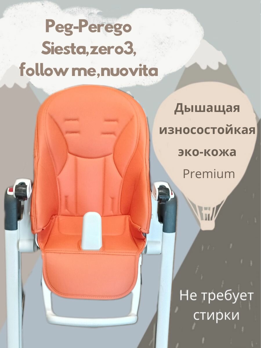 Чехол накидка вкладыш на стульчик для кормления Peg -Perego изготовлен из дышащей воздухо и паропроницаемой эко-кожи PREMIUM нового поколения.