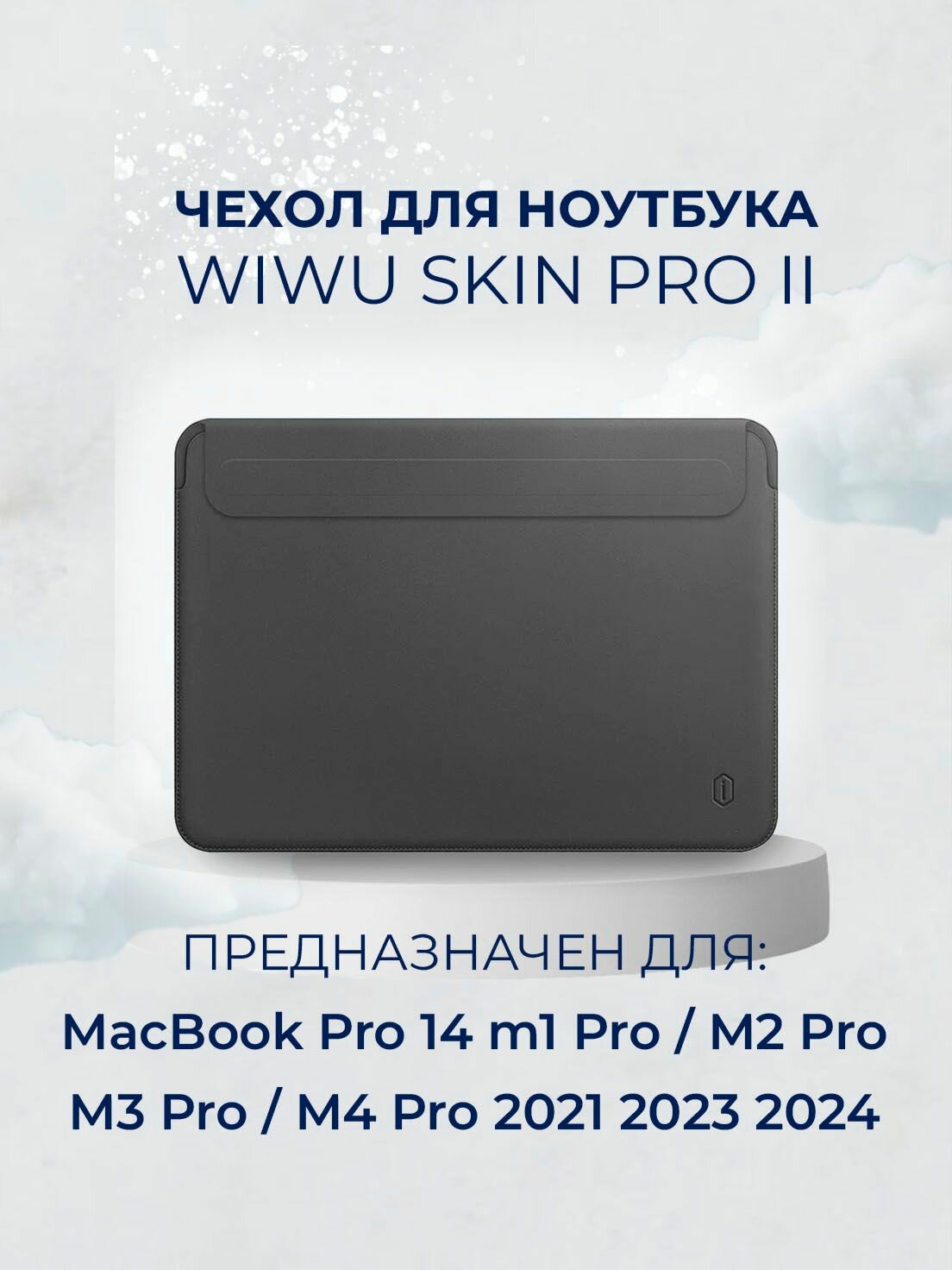 Чехол из экокожи для MacBook Pro 14 M1 M2 M3 M4 M5/ Чехол с магнитной застежкой WiWU Skin Pro 2 для Макбук Про 14 2021 2023 2024 (A2442 A2779 A2918 A2992 A3112 A3401 A3185), Цвет: Графитовый: сравнение цен, характеристики, фото, актуальное наличие и цены.
