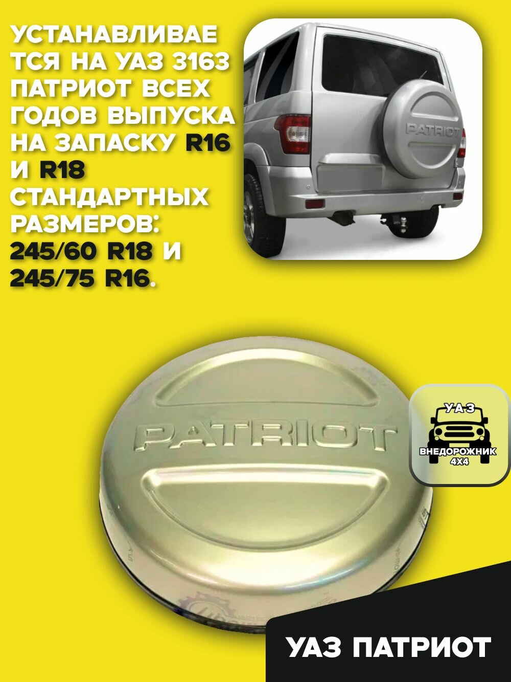 Устанавливается на УАЗ 3163 Патриот всех годов выпуска на запаску R16 и R18 стандартных размеров: 245/60 R18 и 245/75 R16