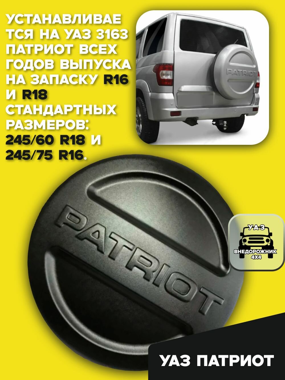 Устанавливается на УАЗ 3163 Патриот всех годов выпуска на запаску R16 и R18 стандартных размеров: 245/60 R18 и 245/75 R16