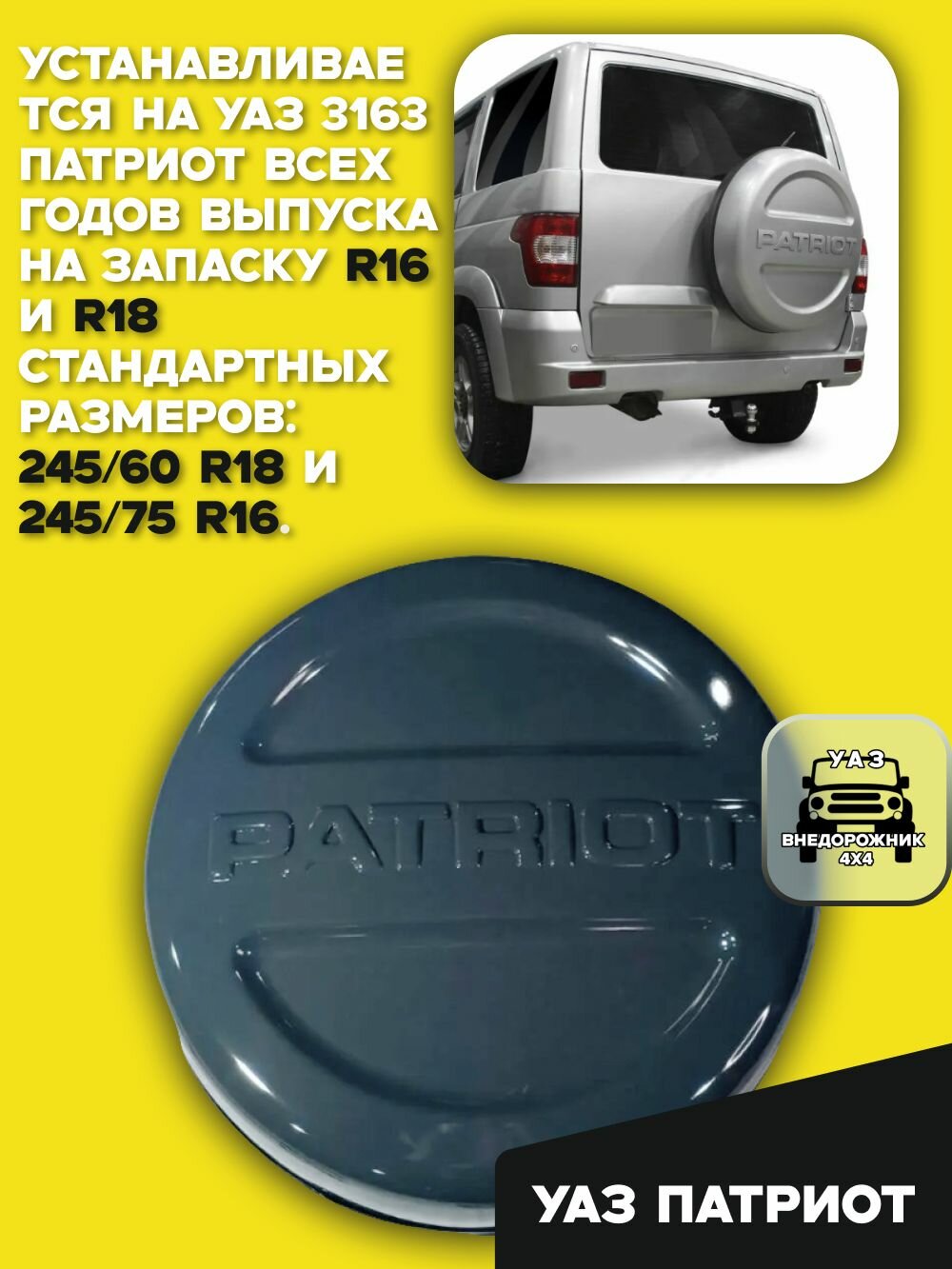 Устанавливается на УАЗ 3163 Патриот всех годов выпуска на запаску R16 и R18 стандартных размеров: 245/60 R18 и 245/75 R16