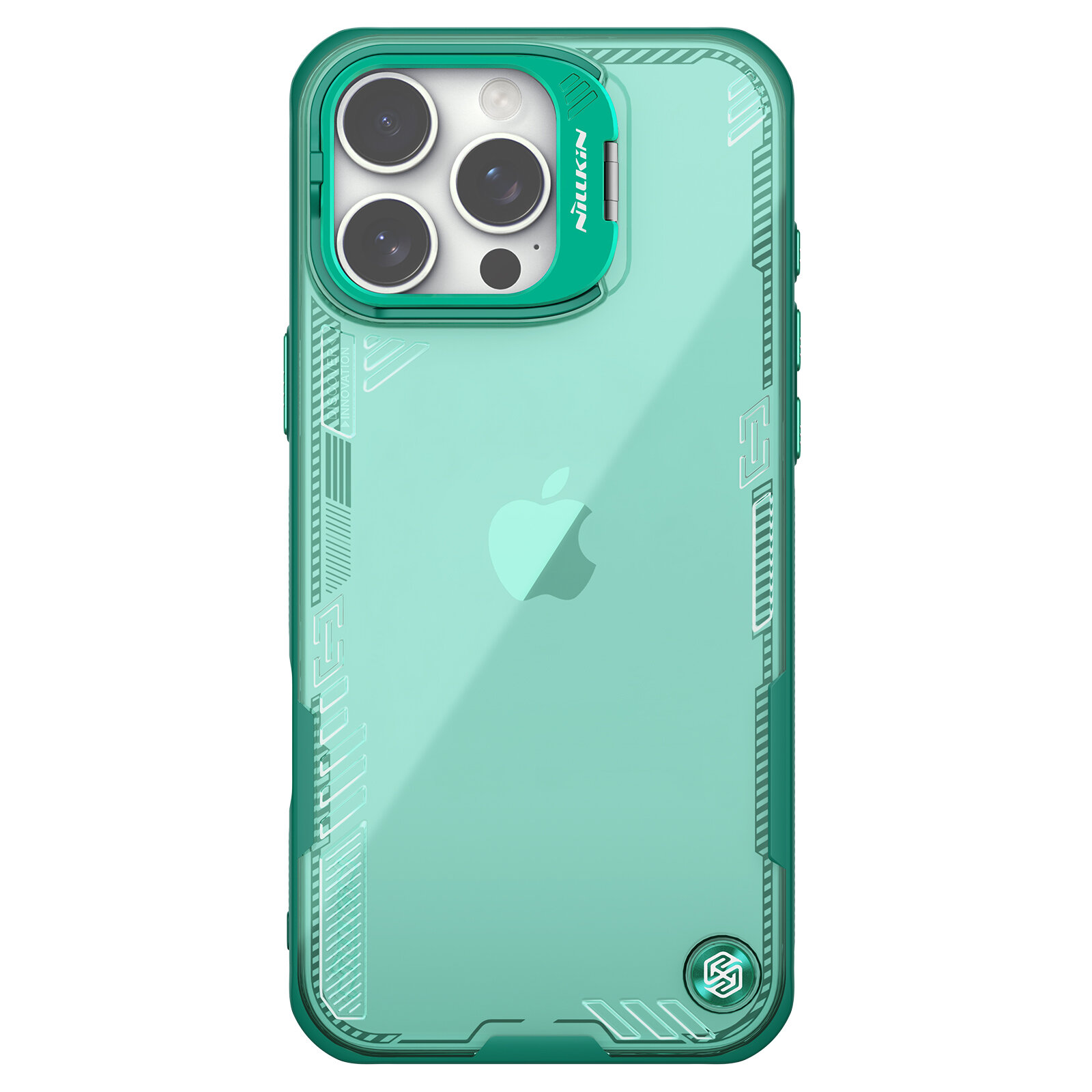 Чехол зеленого цвета от Nillkin с металлической крышкой на iPhone 16 Pro Max, серия Iceblade Prop Case (Hollow Version) (версия с открытой камерой): сравнение цен, характеристики, фото, актуальное наличие и цены.