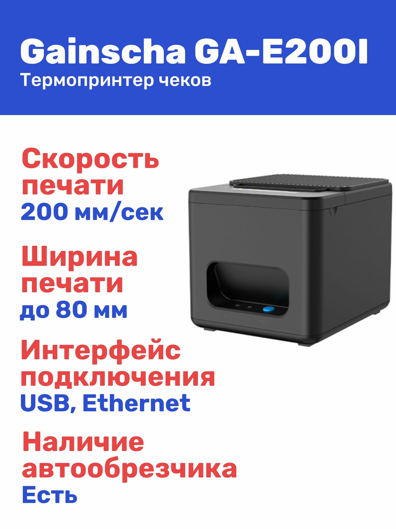Чековый принтер Gainscha GP-E200I, черный термопринтер чеков 80 мм USB+Ethernet: сравнение цен, характеристики, фото, актуальное наличие и цены.