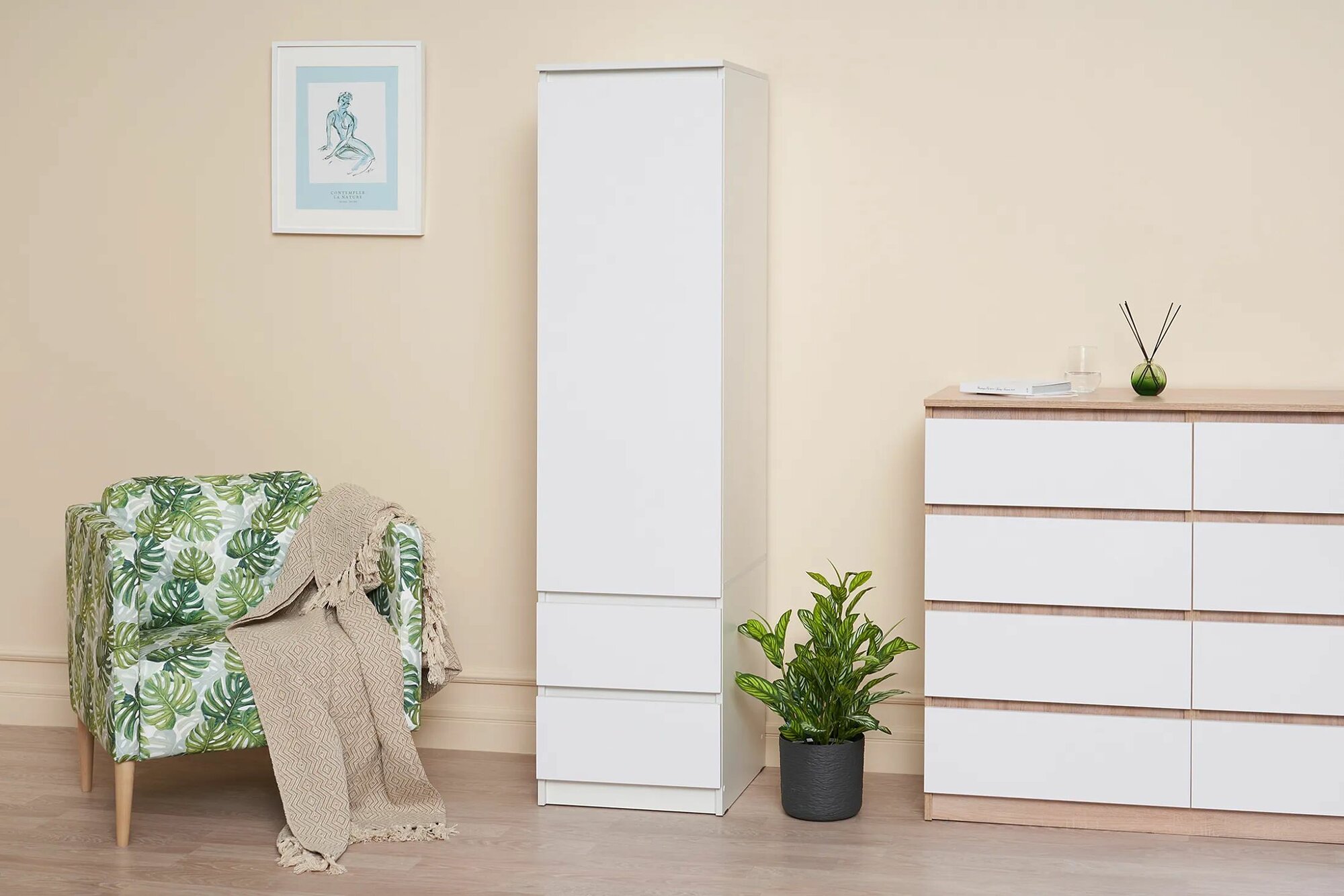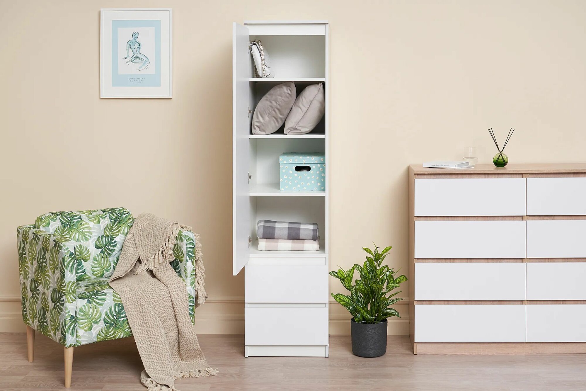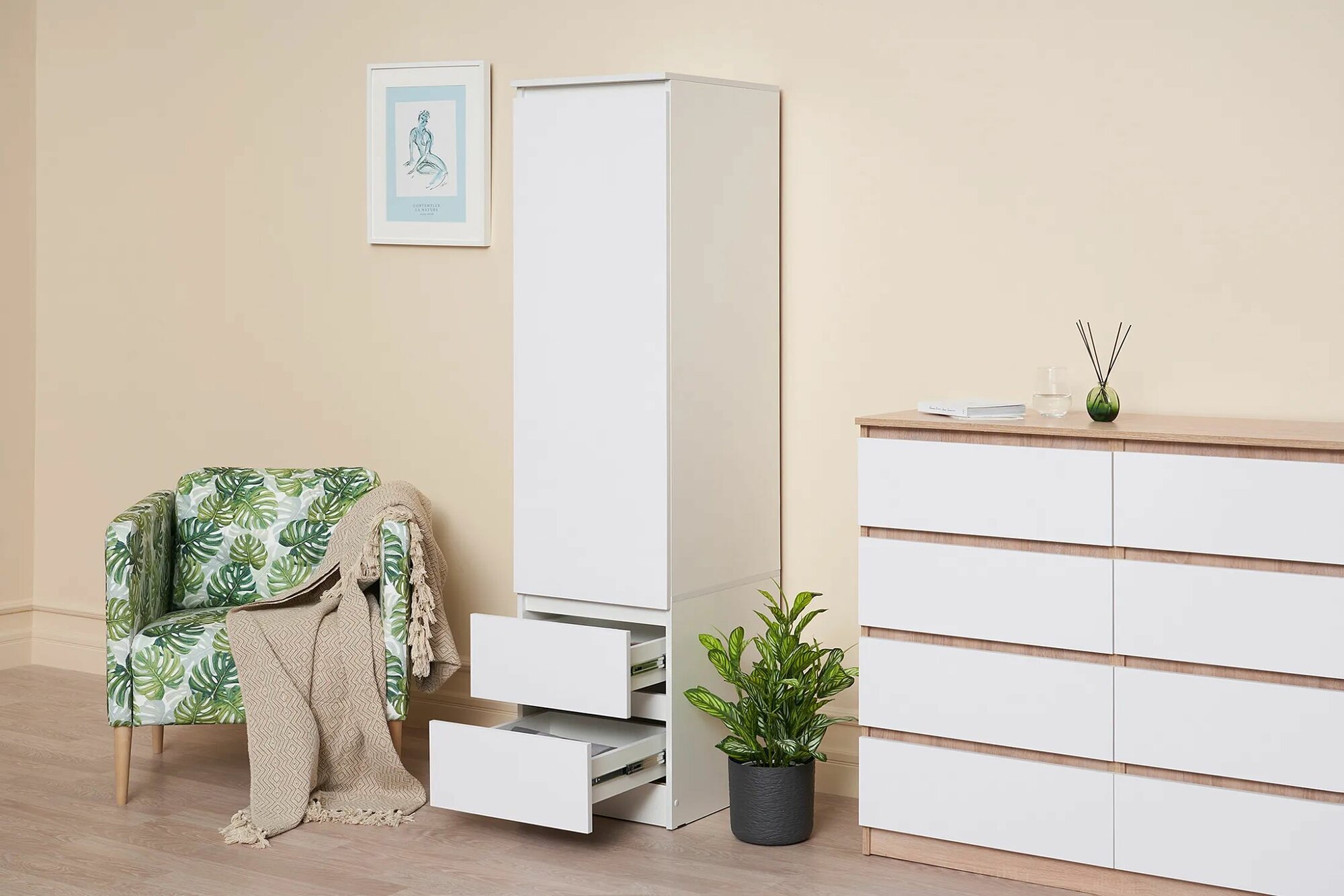 Шкаф-Пенал Челси для одежды с 2 ящиками, 45х51х180 см, Белый глянец холодный/Дуб Сонома из ЛДСП