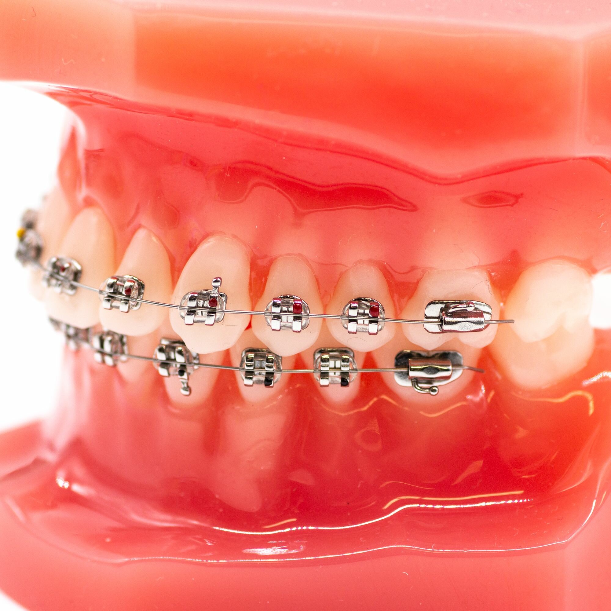 Стоматологическая модель челюсти с металлическими брекетами