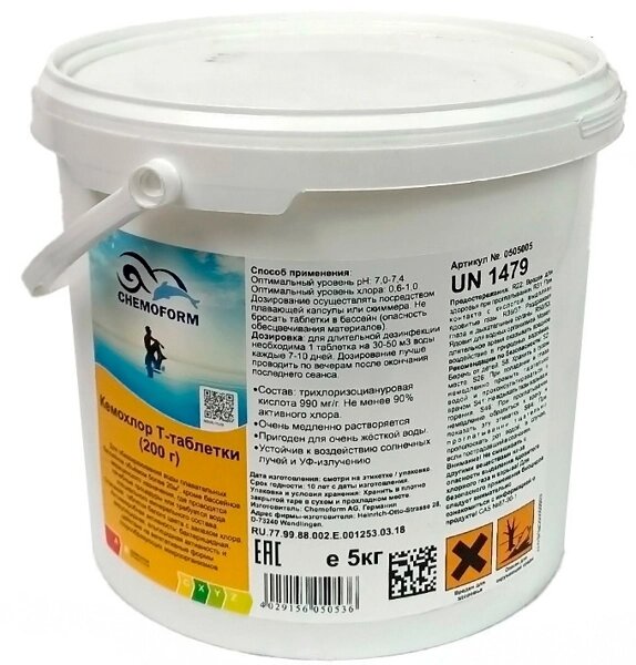 Средство для дезинфекции воды Chemoform Кемохлор Т медленнорастворимый таблетки 5 кг 0505005: сравнение цен, характеристики, фото, актуальное наличие и цены.