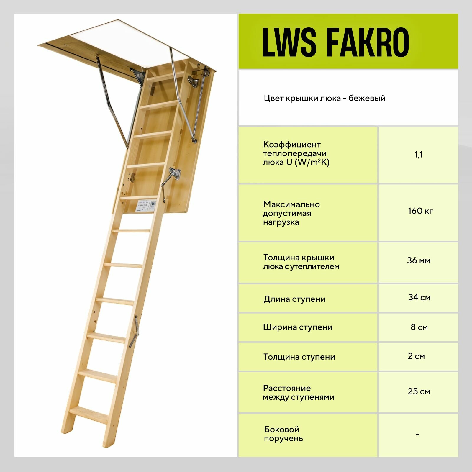 Чердачная складная лестница 60х130х305 LWS FAKRO трансформер выдвижная, из дерева с утепленной крышкой-люком: сравнение цен, характеристики, фото, актуальное наличие и цены.