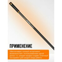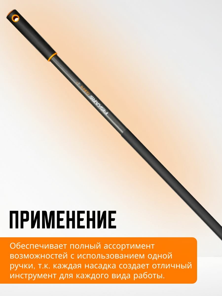 Черенок графитовый для садового инструмента FISKARS QuikFit (1000661) 156 см обеспечит полный ассортимент возможностей для работ в саду с использованием одной ручки. Каждая насадка создает отличный садовый инструмент для каждого специального вида работы, рыхления, окучивания, удалением сорняков, посадки и прополки насаждений. Садовый черенок может использоваться со всеми стандартными насадками Fiskars QuikFit тяпка садовая, мотыга, окучник ручной, сучкорез, инструмент для обработки почвы, рыхлитель, культиватор. Каплевидная форма инструмента и мягкое покрытие ручки SoftGrip обеспечивают оптимальный комфорт при работе. Уникальный автоматический замок делает ручной рукоятку готовой к использованию за секунды. Черенки для насадок Фискарс изготовлены из закаленного алюминия, что делает их особенно прочным и долговечными. Ручка имеет пластиковое покрытие и нескользящую ручку, что обеспечивает еще больший комфорт и безопасность при использовании. Возможность подвешивания, позволяет безопасно хранить инвентарь. Уникальный автоматический замок делает инструмент готовым к использованию за секунды. Гарантийный срок 2 года.