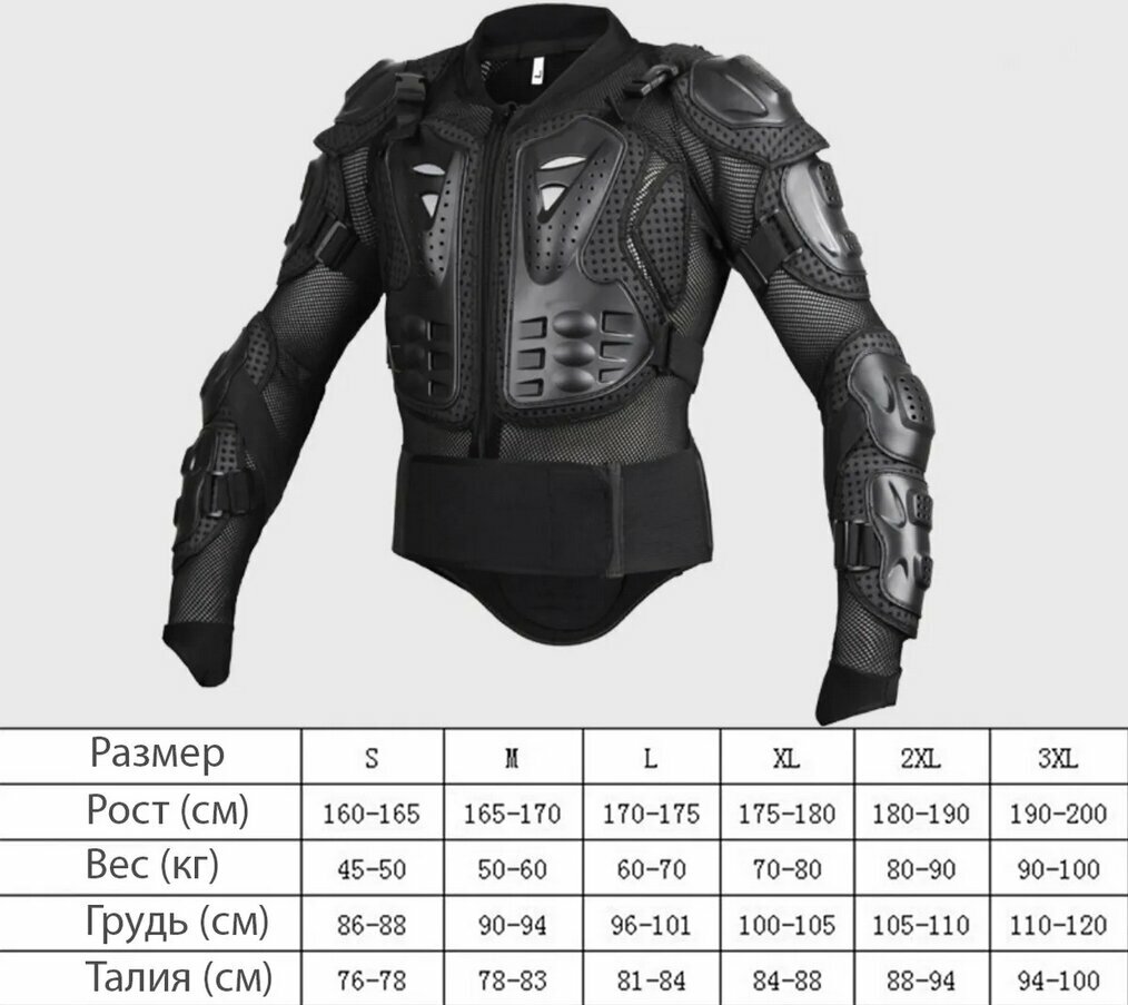 - Защита спины, груди, живота, плеча, предплечья и локтя