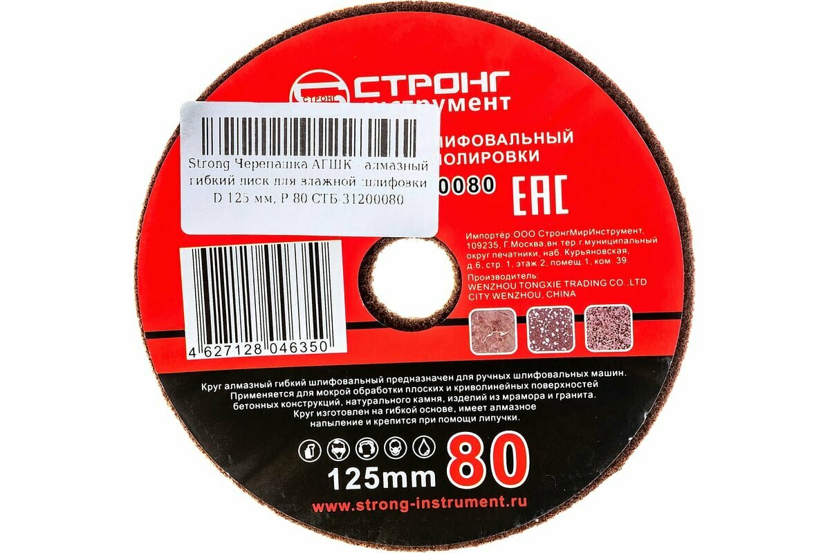 Купить Черепашка АГШК алмазный гибкий диск для влажной шлифовки 125 мм, P 80 Strong СТБ-31200080 с доставкой по всей России. Черепашка АГШК алмазный гибкий диск для влажной шлифовки 125 мм, P 80 Strong СТБ-31200080: сравнение цен, характеристики, фото, актуальное наличие и цены.