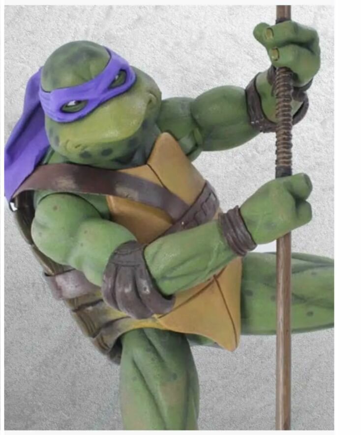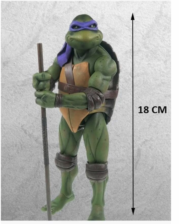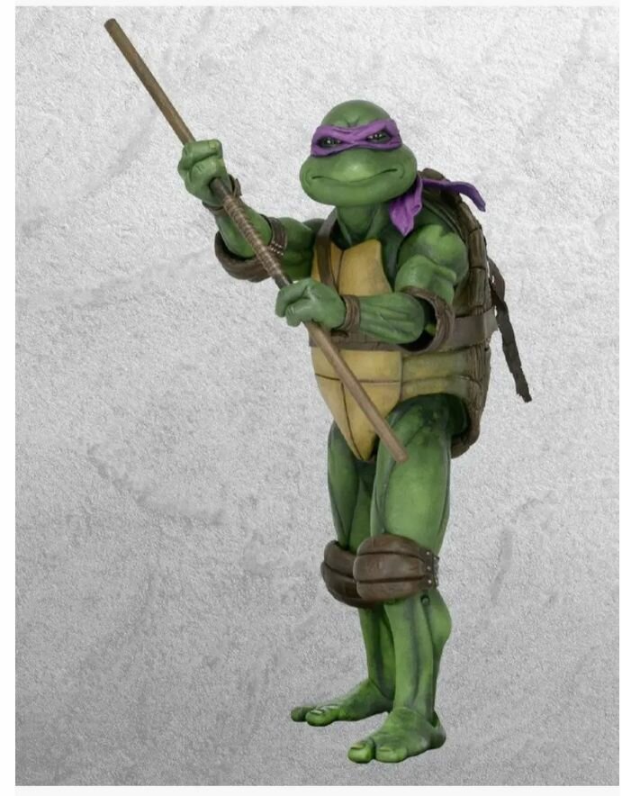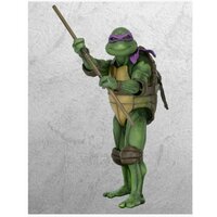 Фигурка NECA Teenage Mutant Ninja Turtles - 7” Scale Action Figure - 1990 Movie Donatello 54076 выполнена в виде одного из главных персонажей франшизы "Черепашки-ниндзя". Донателло (англ. Donatello) — учёный-любитель, исследователь и «просто гений», Донателло имеет репутацию заумного парня. Он, возможно, наименее агрессивный в команде, поскольку предпочитает разрешать конфликты мирным путём. Несмотря на это, в характере персонажа присутствуют черты безумного профессора, изобретения и исследования которого часто ведут к разрушительным последствиям и сулят катастрофы. В сериале 2012-го года влюблен в Эйприл О’Нил. Носит фиолетовую маску и владеет шестом-бо. А в космосе ещё у шеста-бо есть интерфейс с электрическим разрядом. Его назвали в честь известного скульптора Донато ди Никколо ди Бетто Барди.