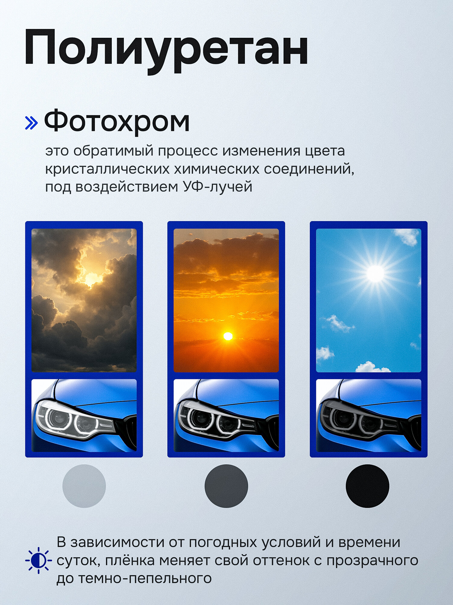 Черная фотохромная пленка полиуретан для тонировки фар. Бронепленка на фары с эффектом автозатемнения — 50х152 см: сравнение цен, характеристики, фото, актуальное наличие и цены.