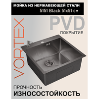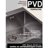 Купить Мойка для кухни 5151 Black 50х50 см графит с дозатором, нержавеющая сталь, PVD-покрытие, квадратная с доставкой по всей России.