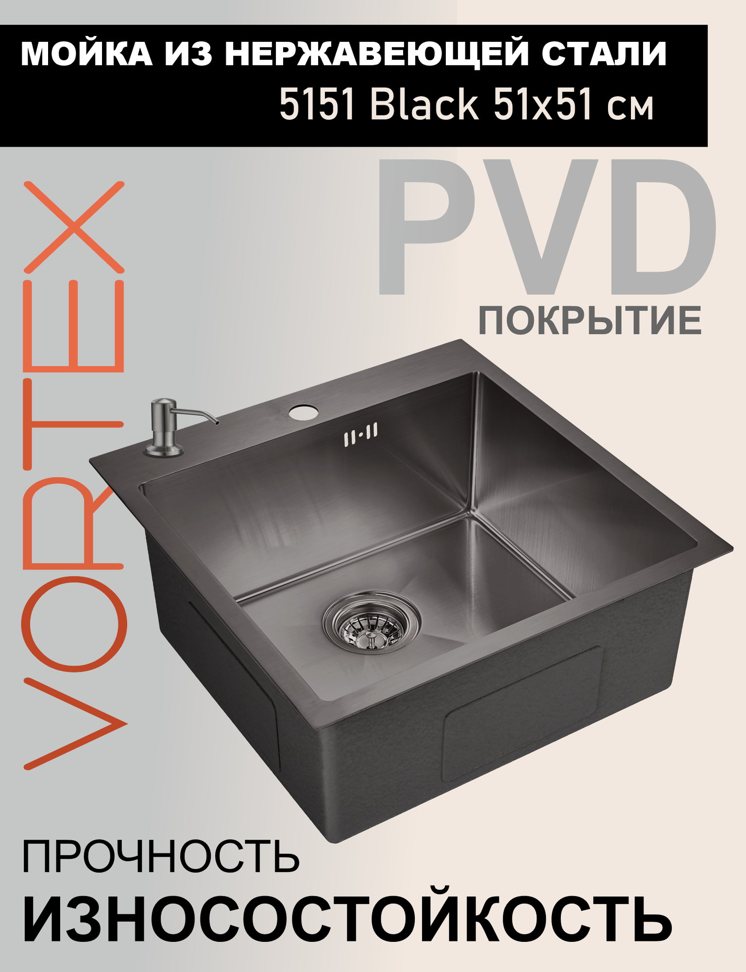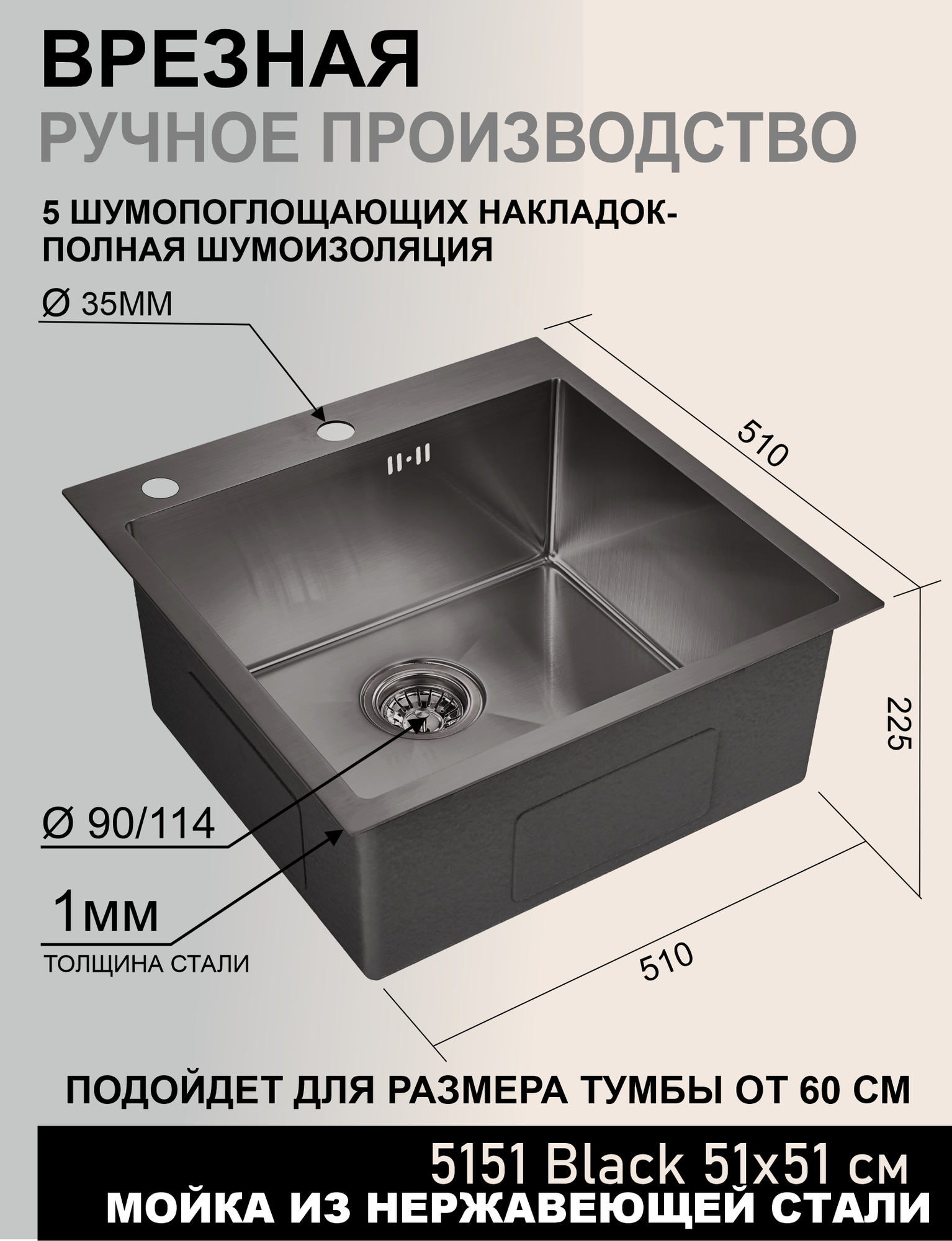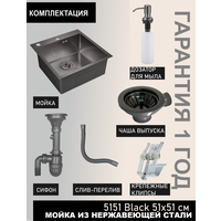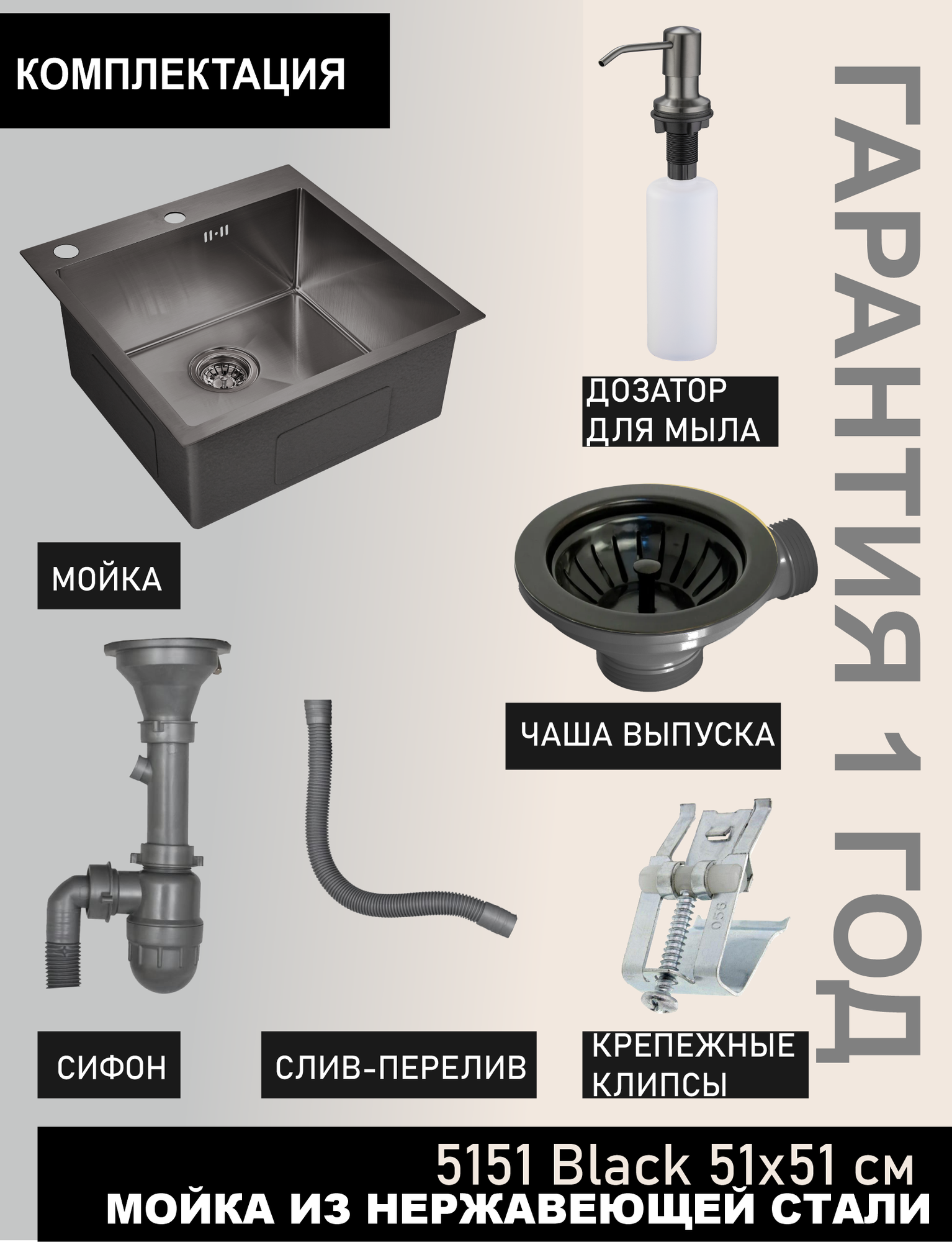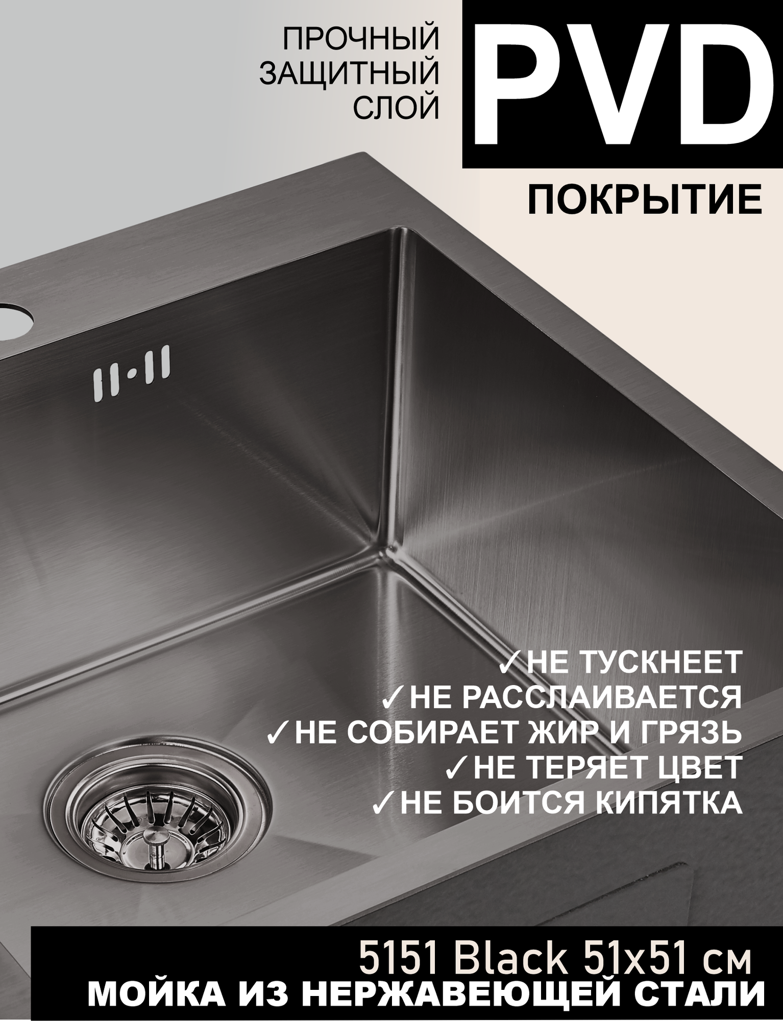 Мойка для кухни 5151 Black 50х50 см графит с дозатором, нержавеющая сталь, PVD-покрытие, квадратная: сравнение цен, характеристики, фото, актуальное наличие и цены.