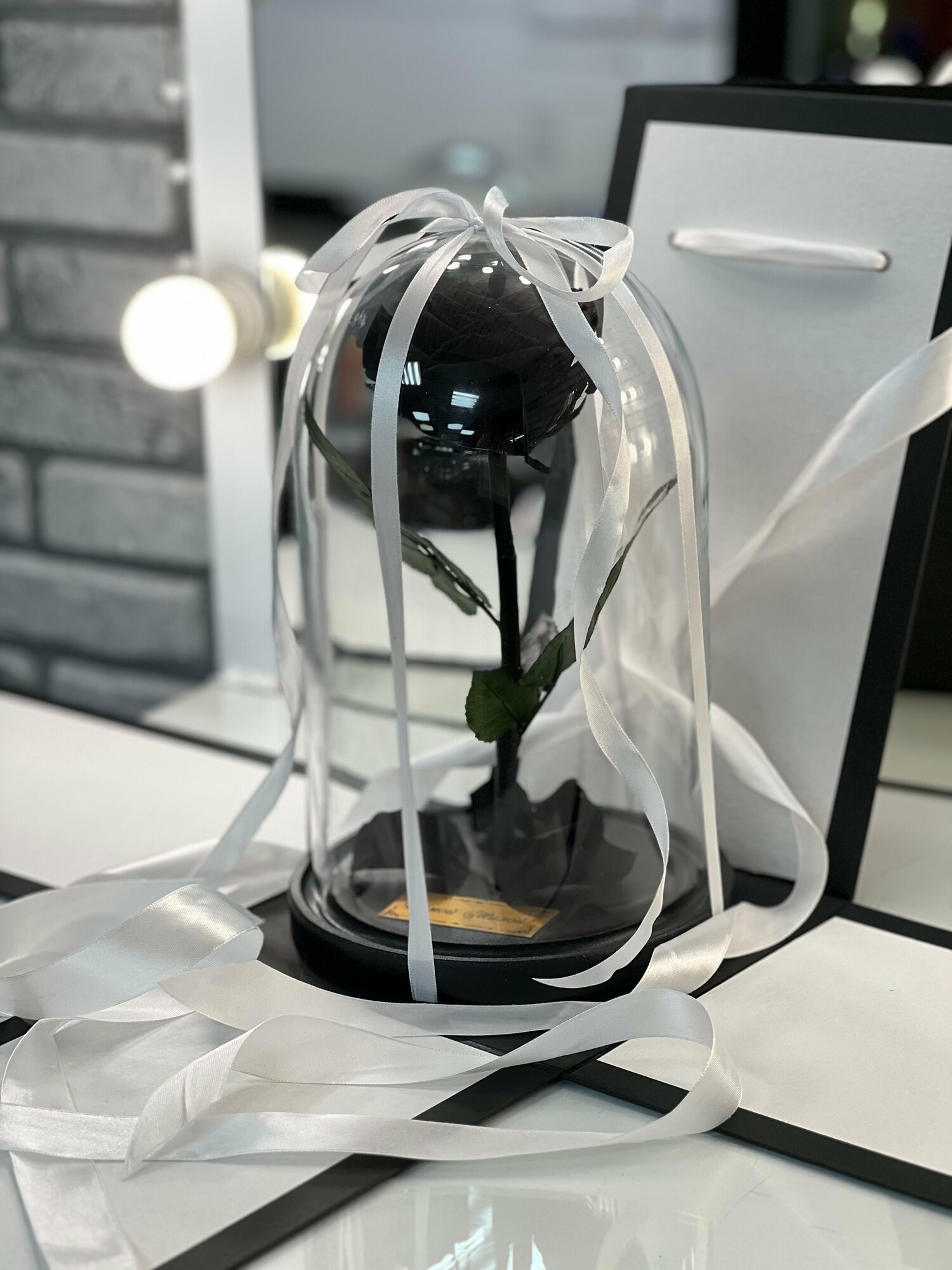 Черная роза в колбе «Премиум» в подарочной коробке с вау-эффектом /26 см/Живет 5 лет!: сравнение цен, характеристики, фото, актуальное наличие и цены.