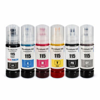 Комплект совместимых чернил ink. E-115 предназначен для заправки заводских СНПЧ в 6-цветных принтерах и МФУ Epson Ecotank L8160, L8180, L8168, L8188, при этом стоит ощутимо дешевле оригинального. Чернила яркие и невооруженным взглядом не отличимы от оригинальных при печати. В набор входят 6 бутылок краски: пигментный черный для печати документов и 5 водорастворимых, которые принтер использует для фото и картинок.