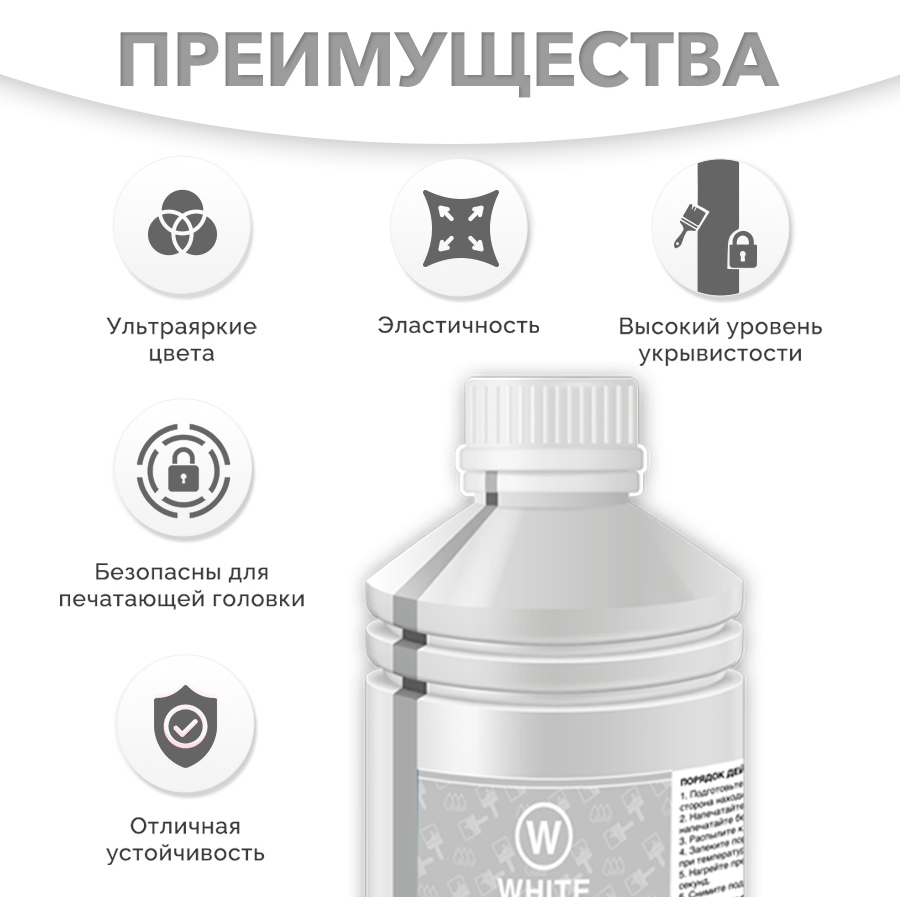 Чернила пигментные dtf (Direct to film) для печати на ткани и совместимы с головками Epson DX5, DX7, TFP, i3200/4720.