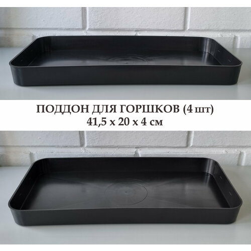 Черные поддоны для цветочных горшков и выращивания рассады. Изготовлены из качественного прочного пластика, устойчивого к изменениям температуры воздуха и воздействию прямых солнечных лучей. Долговечны. Поддоны крепкие, не гнутся, позволяют легко переносить в них горшки с большим весом. Благодаря своим небольшим размерам поддоны поместятся даже на самом узком подоконнике. Имеют прямоугольную форму с закругленными/скошенными углами, из-за чего не выглядят громоздко. Поддоны используются как подставка под горшки для цветов и защищают подоконник от грязи, царапин и влаги. Высокий бортик удерживает горшки от падения. Помимо горшков в поддоне можно разместить торфяные и пластиковые кассеты, стаканчики для рассады. Их также можно использовать в качестве лотков для микрозелени. Имея стильный и минималистичный дизайн, поддоны помогут организовать пространство для растений на стеллаже или подоконнике, и придадут коллекции упорядоченный и эстетически красивый вид.