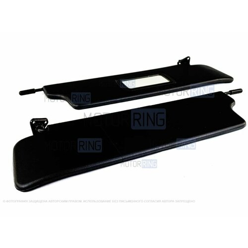 Данные козырьки оснащены зеркалом в пассажирском козырьке. Крепление заводское. Работают в двух режимах: как в стандартном открытии сверху вниз, так и отсоединяются во внутренней части, чтобы отогнуть козырек в боковую сторону по горизонтали. Цвет: черный с обеих сторонУстановка осуществляется с помощью крепления кронштейнов козырьков на шурупы, в установленные отверстия потолка автомобиля. Назначение