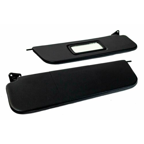 Комплект козырьков предназначен для замены вышедших из строя штатных или тюнинга салона. Оснащены зеркалом в пассажирском козырьке. Крепление заводское. Работают в двух режимах: как в стандартном открытии сверху вниз, так и отсоединяются во внутренней части, чтобы отогнуть козырек в боковую сторону по горизонтали.