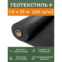 Купить Черный Геотекстиль 200 г/м2, рулон 1.6х25 м, укрывной материал нетканый для клубники от сорняков, агроткань застилочная для дорожки, парковки, дренажа с доставкой по всей России.