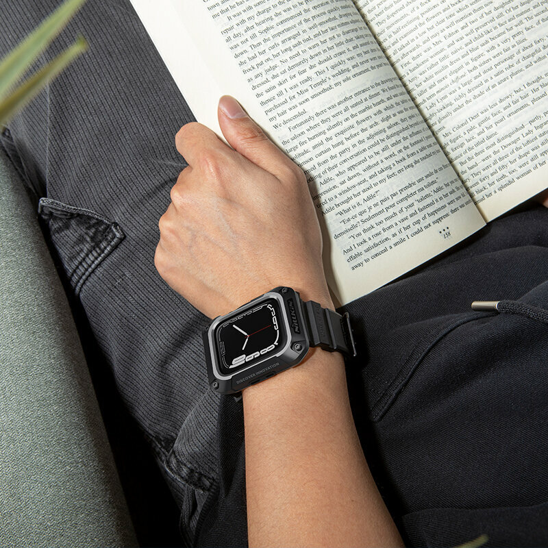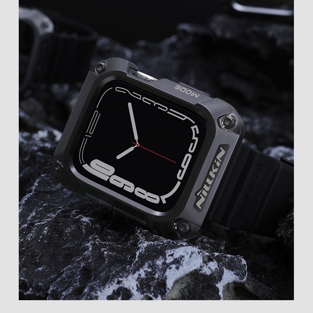 Черный металлический чехол-бампер от Nillkin DynaGuard Wristband Case для часов Apple Watch Series 7 и 8, 45мм, в комплекте с ремешком из ТПУ с двойным замком: сравнение цен, характеристики, фото, актуальное наличие и цены.