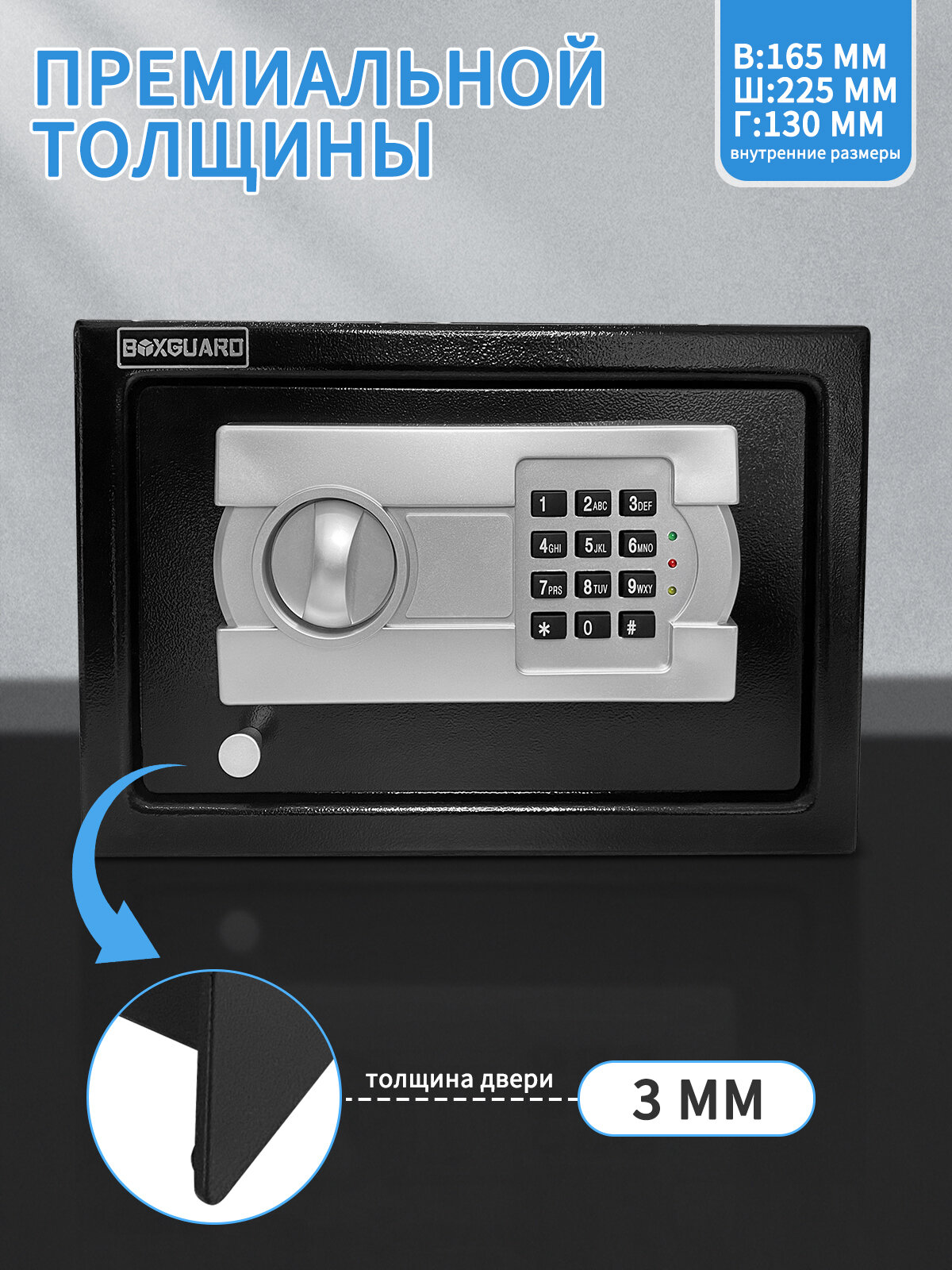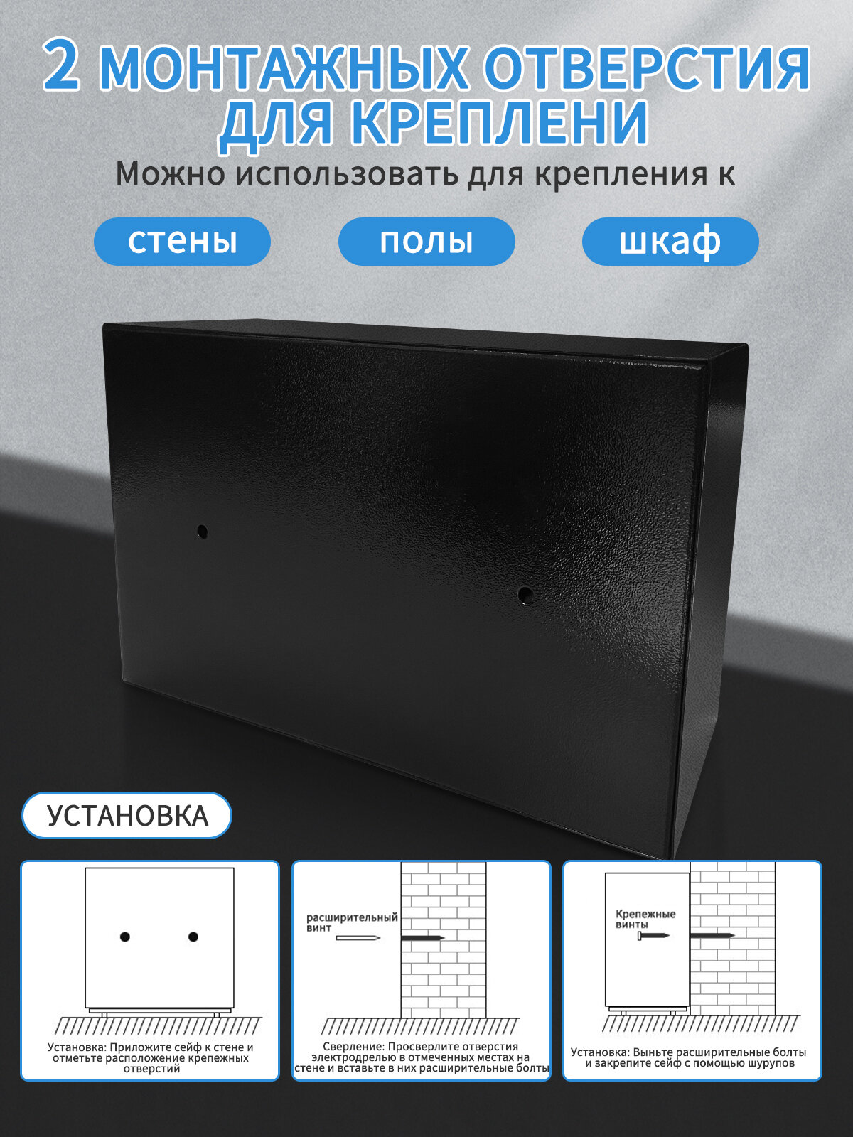 Обработка поверхности для предотвращения осыпания краски: Поверхность сейфа обработана электростатическим фосфатированием, поэтому краска не осыпается. безопасность И прочность: Сейф изготовлен из прочной, вандалоустойчивой стали, обеспечивающей прочность, надежность и долговечность. Прочная сталь выдерживает удары ручных и механических инструментов. Удобные аварийные ключи: В комплект входят 2 аварийных ключа, которые можно использовать для открытия сейфа и извлечения ценностей, если разрядилась батарея клавиатуры. Внутренняя петля с защитой от взлома: Для дополнительной безопасности мы использовали скрытую петлю, чтобы предотвратить взлом. Он идеально подходит для дома, офиса или рабочего места. легкое управление И программирование: Цифровой вход избавляет от необходимости дублировать несколько ключей. Вы можете открыть его с помощью цифрового штыря или прилагаемого ключа-переключателя.