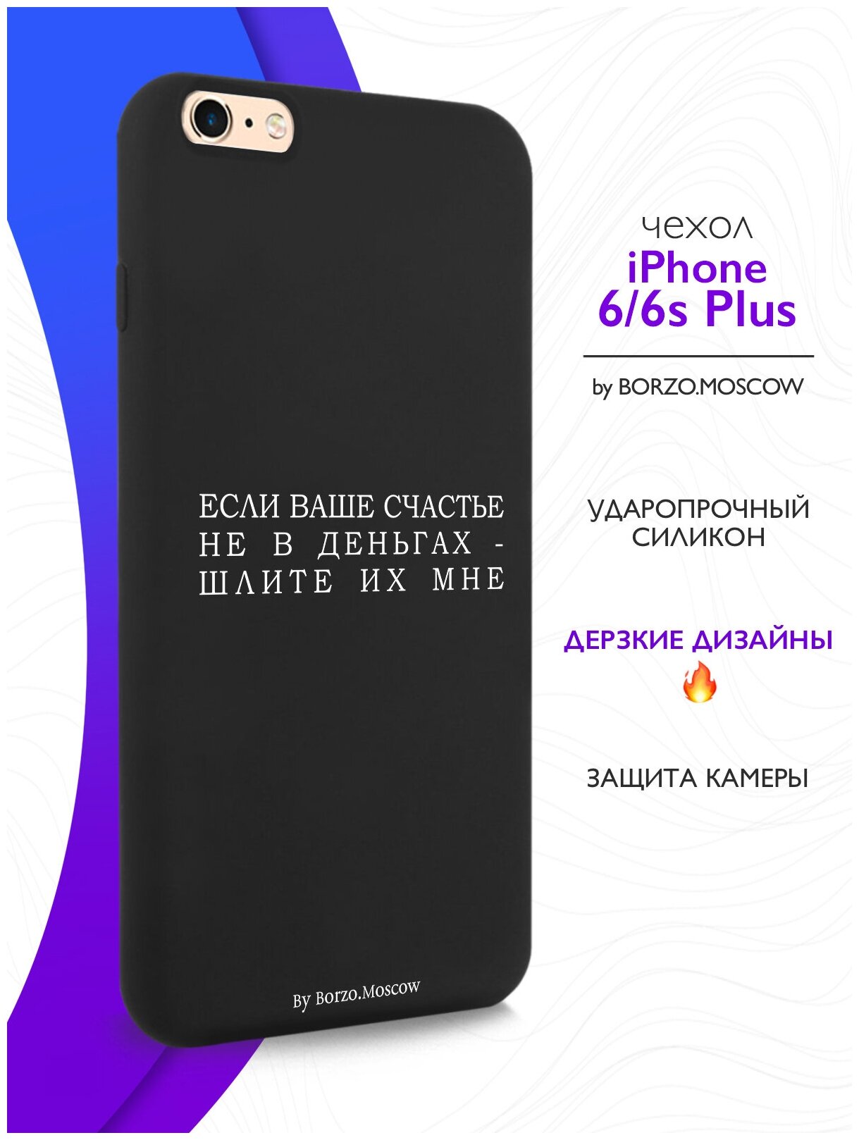 Черный силиконовый чехол Borzo.Moscow для iPhone 6/6s Plus Если счастье не в деньгах - шлите их мне для Айфон 6/6с Плюс