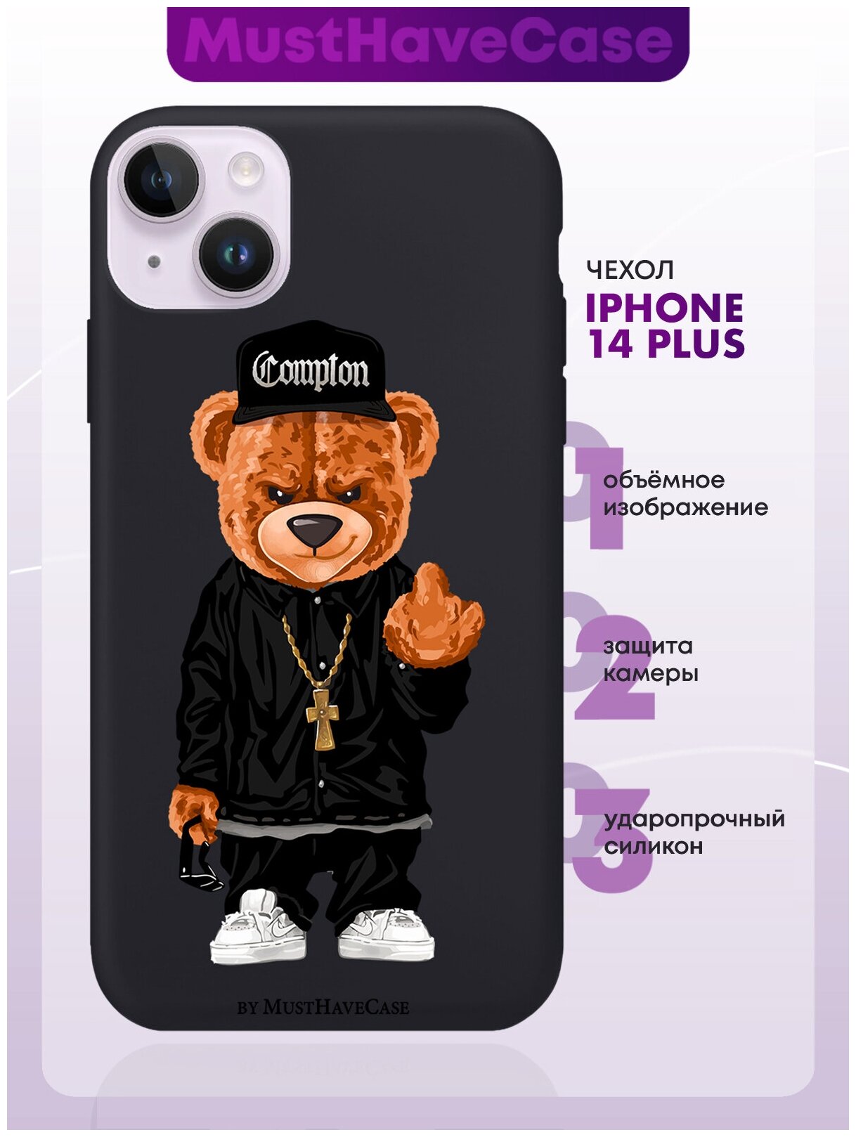 Купить Черный силиконовый чехол для iPhone 14 Plus Мишка Compton для Айфон 14 Плюс с доставкой по всей России.