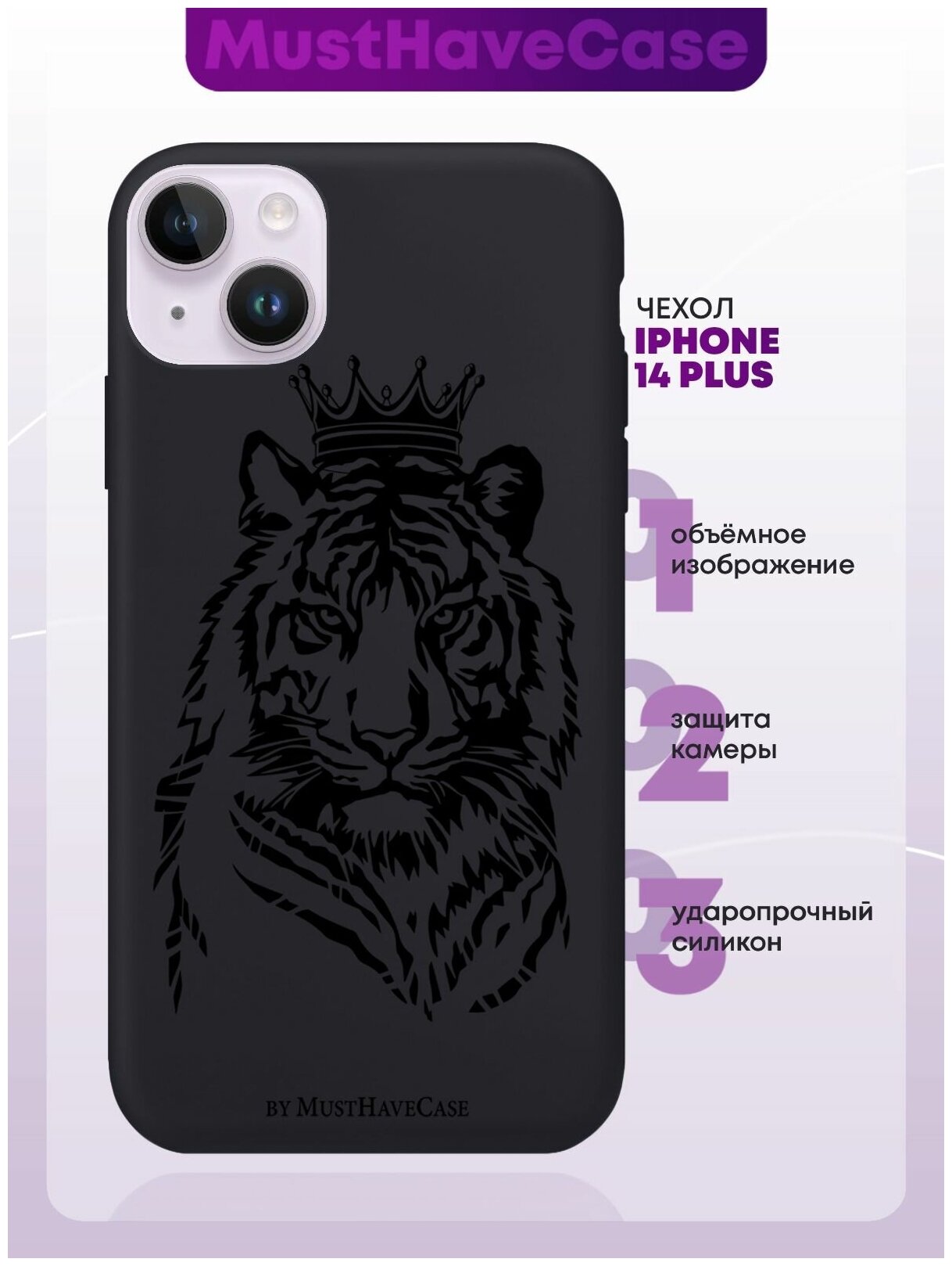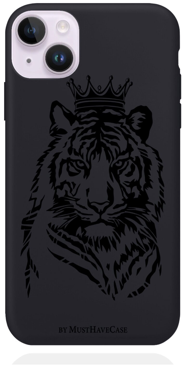 Купить Черный силиконовый чехол MustHaveCase для iPhone 14 Plus Тигр с Короной для Айфон 14 Плюс с доставкой по всей России.