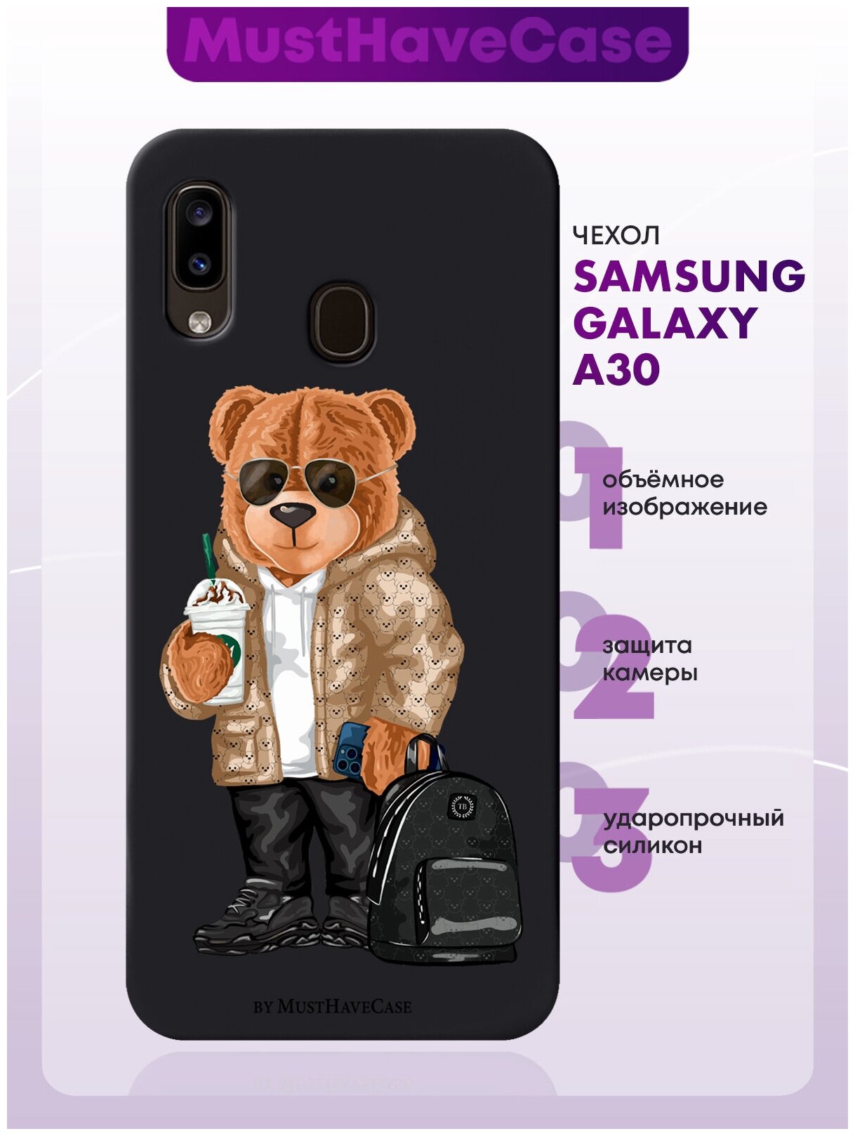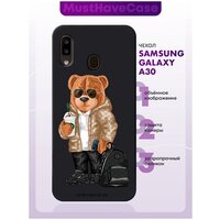 Купить Черный силиконовый чехол MustHaveCase для Samsung Galaxy A30 Tony Style в очках для Самсунг Галакси А30 с доставкой по всей России.