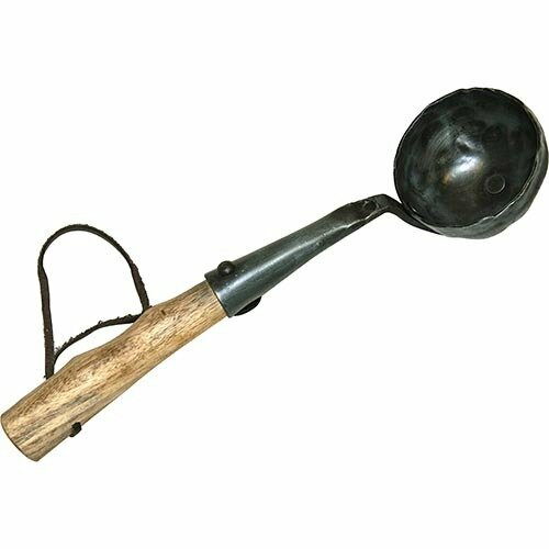 Кованый черпак с деревянной ручкой для бани и сауны. Удобен для черпания кипятка или холодной воды из чана, для расплёскивания ароматных настоев по стенам и полкам в парной. Резная ручка хорошо ложится в ладонь, не нагревается. Благодаря небольшому изгибу ручки воду буде легко зачерпывать даже из глубины ёмкости. На конце ручки имеется крепкая петля из натуральной кожи для подвешивания на крючок или вешалку.