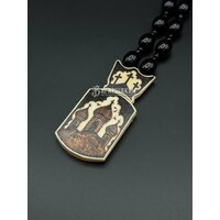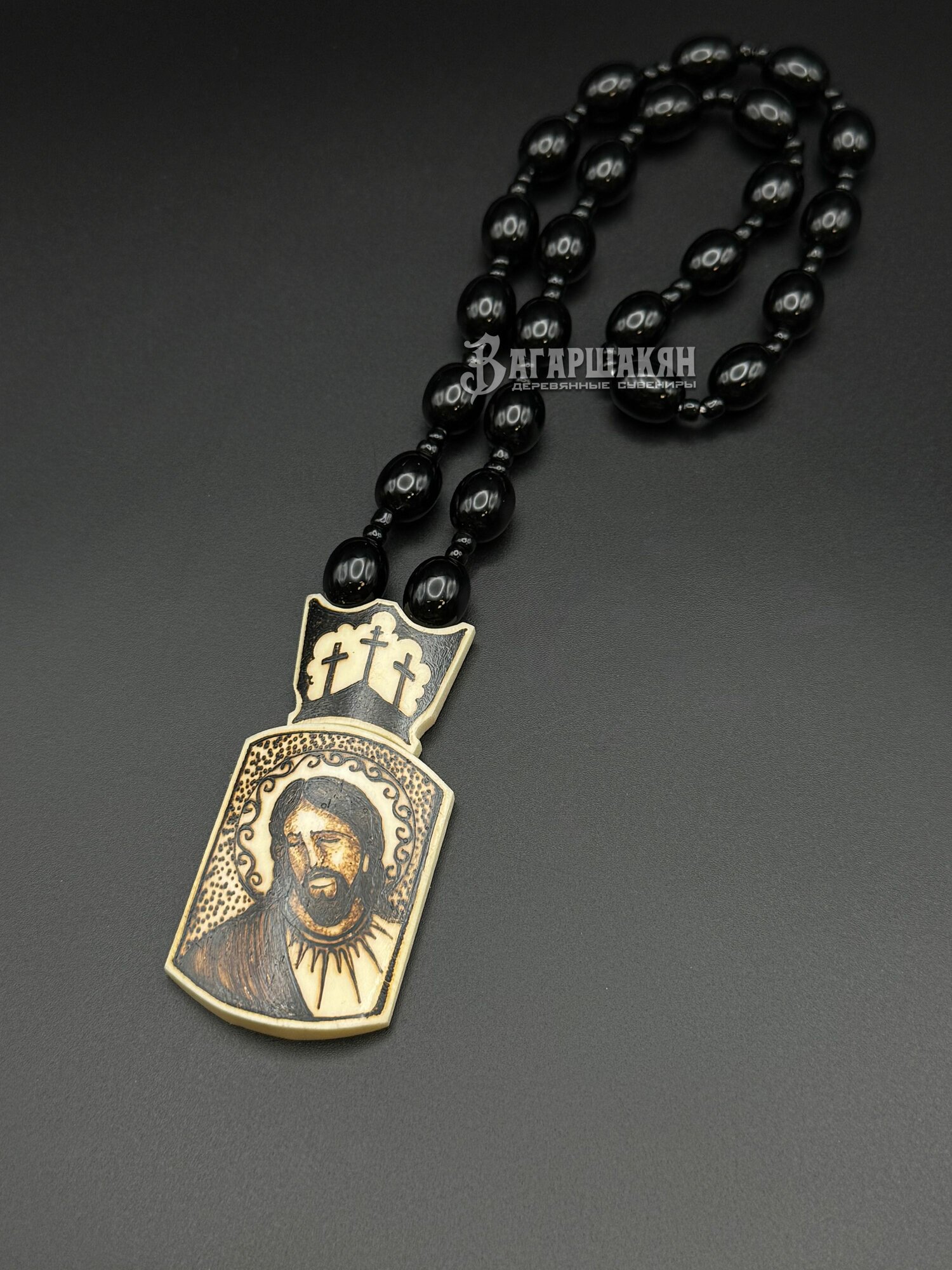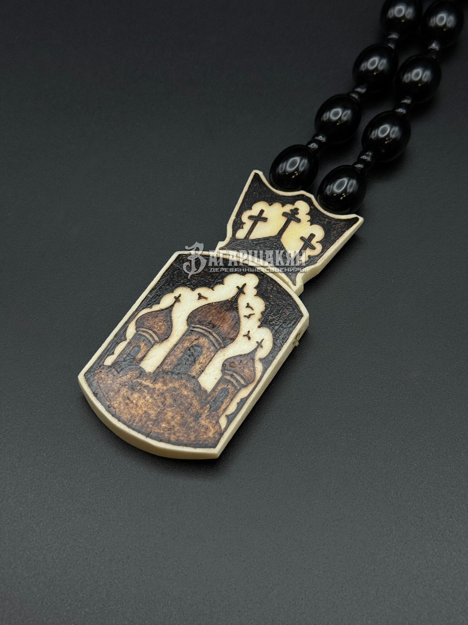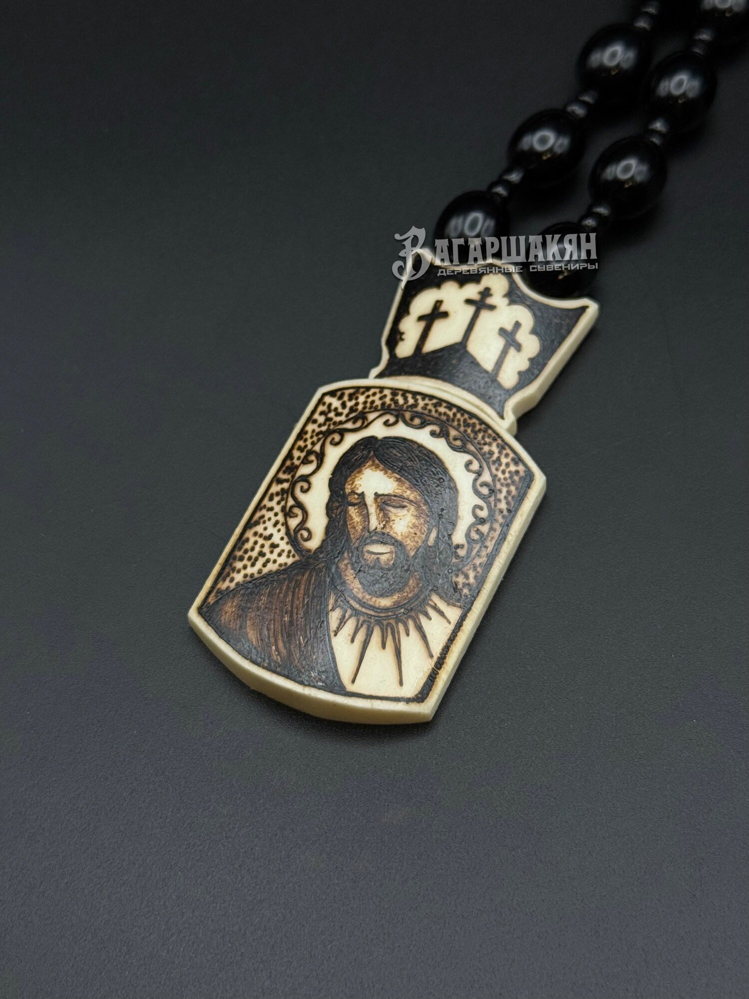 Представляем вам переборные чётки ручной работы с костяным подвесом и художественной росписью. Двусторонний кулон украшен изображением