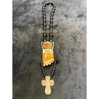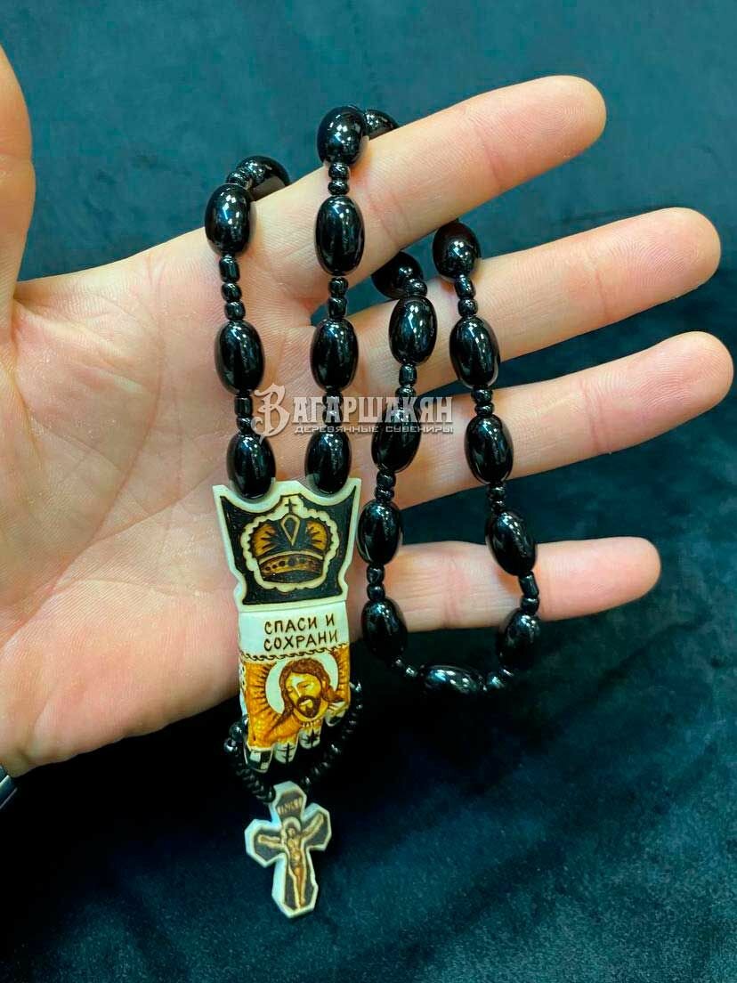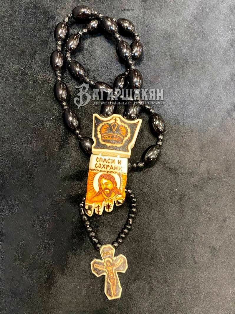 Представляем вам переборные чётки ручной работы с костяным подвесом и художественной росписью. Двусторонний кулон украшен изображением Иисуса портретами в технике выжигания бильярдного шара