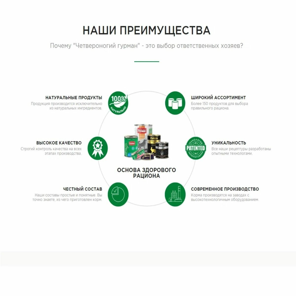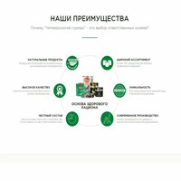 Корм полностью натуральный – в его составе нет искусственных красителей, ароматизаторов, усилителей вкуса и ГМО.