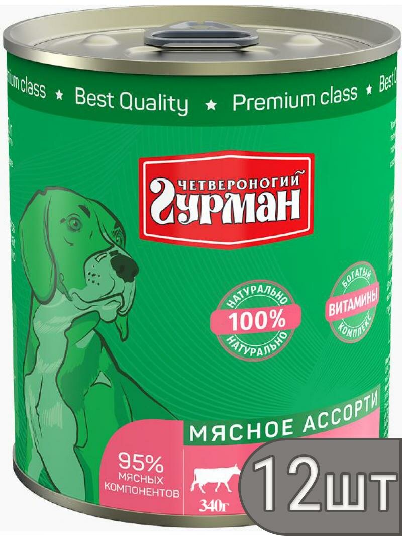 Четвероногий Гурман Набор 12 шт Консервы для собак «Мясное ассорти» с сердцем, 340г 4.08 кг: сравнение цен, характеристики, фото, актуальное наличие и цены.