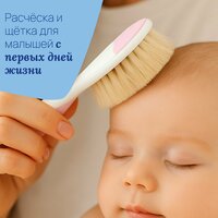 Детская расческа для волос и щетка с натуральной щетиной от итальянского бренда Chicco идеально подходят для деликатного причесывания новорождённых и малышей постарше. Щетина в щетке выполнена из натурального козьего волоса, что безопасно для малыша. Мягкая щетина щетки прекрасно массирует кожу головы новорожденного, улучшает кровообращение, не вызывает аллергии, не царапает голову малыша. Зубцы детской расчески c закругленными кончиками обеспечивают комфорт при расчесывании чувствительной кожи головы. Благодаря большим ручкам с нескользящим покрытием расческу и щетку удобно держать маме и малышу. Благодаря компактному размеру набору для волос удобно использовать дома и брать в поездки. Детская расческа и щетка Chicco предназначены для использования с рождения. Удобно мыть. Округлая форма щетки, современный дизайн и приятные цвета порадуют ребенка, когда он подрастет и захочет причесываться сам. Детские наборы для ухода за волосами представлены в двух расцветках: расческа и щетка для мальчика голубого цвета и для девочки - розового цвета.