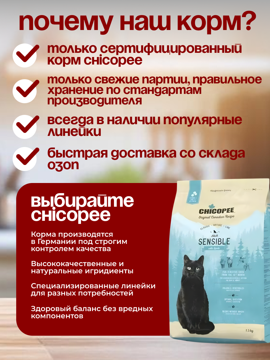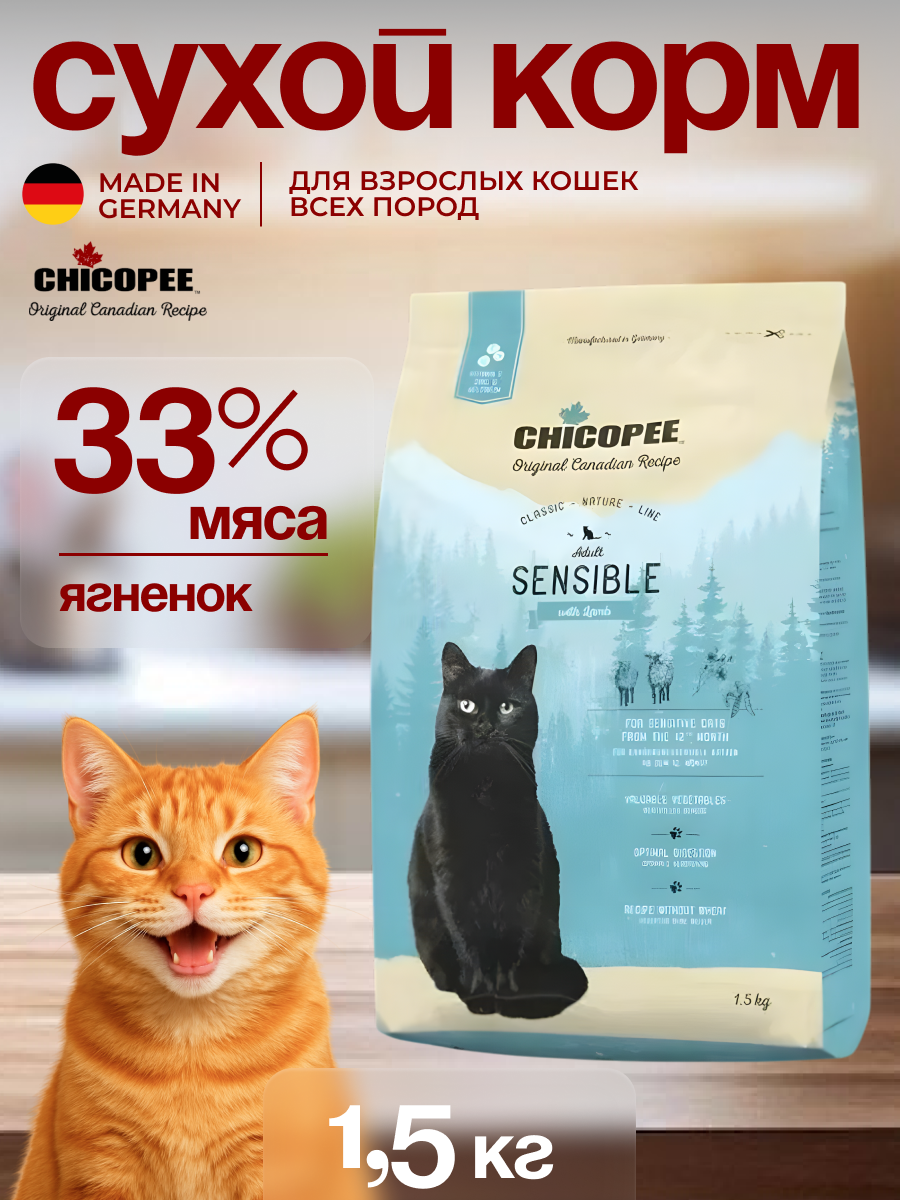 Купить Chicopee CNL Sensible (Ягненок) для кошек, 1,5 кг с доставкой по всей России.