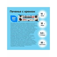 Протеиновый батончик CHIKABAR "Хрустящее Печенье" - это вкусные шоколадные батончики с нежным кремом, с высоким процентом добавления белка, без сахара. Белки на порцию -15 г, жиры на порцию 12 г, углеводы на порцию - 4,3 г.
