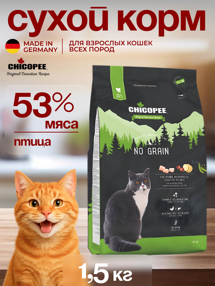 Чикопи ХНЛ Кэт для кошек с чувствительным пищеварением/Chicopee HNL Cat No Grain 1,5 кг: сравнение цен, характеристики, фото, актуальное наличие и цены.