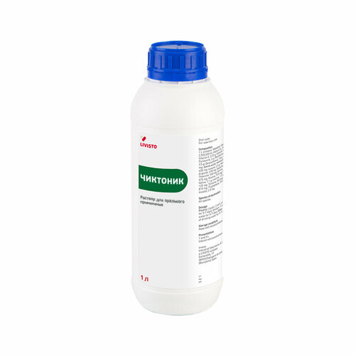 Чиктоник в 1 мл содержит витамин А — 2500 МЕ, витамин Д3 — 500 МЕ, альфатокоферол — 3,75 мг, витамин В1 — 3,5 мг, витамин В2 — 4 мг, витамин В6 — 2 мг, витамин В12 — 0,01 мг, пантотенат натрия — 15 мг; витамин К3 — 0,250 мг, холин хлорид — 0,4 мг, биотин — 0,002 мг, инозитол — 0,0025 мг, D, L -метионин — 5 мг, L -лизин — 2,5 мг, гистидин — 0,9 мг, аргинин — 0,49 мг, аспарагиновая кислота — 1,45 мг, треонин — 0,5 мг, серин — 0,68 мг, глутаминовая кислота — 1,16 мг, пролин — 0,51 мг, глицин — 0,575 мг, аланин — 0,975 мг, цистин — 0,15 мг, валин — 1,1 мг, лейцин — 1,5 мг, изолейцин — 0,125 мг, тирозин — 0,34 мг, фенилаланин — 0,81 мг, триптофан — 0,075 мг и наполнитель. По внешнему виду представляет собой непрозрачный раствор темно-коричневого цвета для перорального применения. Расфасовывают в полимерные флаконы по 1л, 5л и 25 л из непрозрачного белого пластика с крышками контроля первого вскрытия.