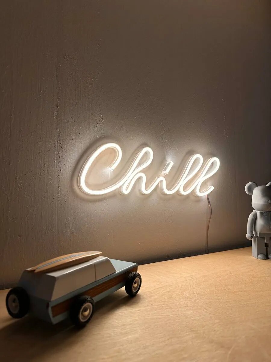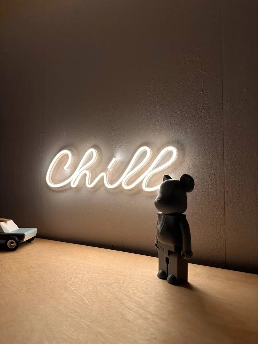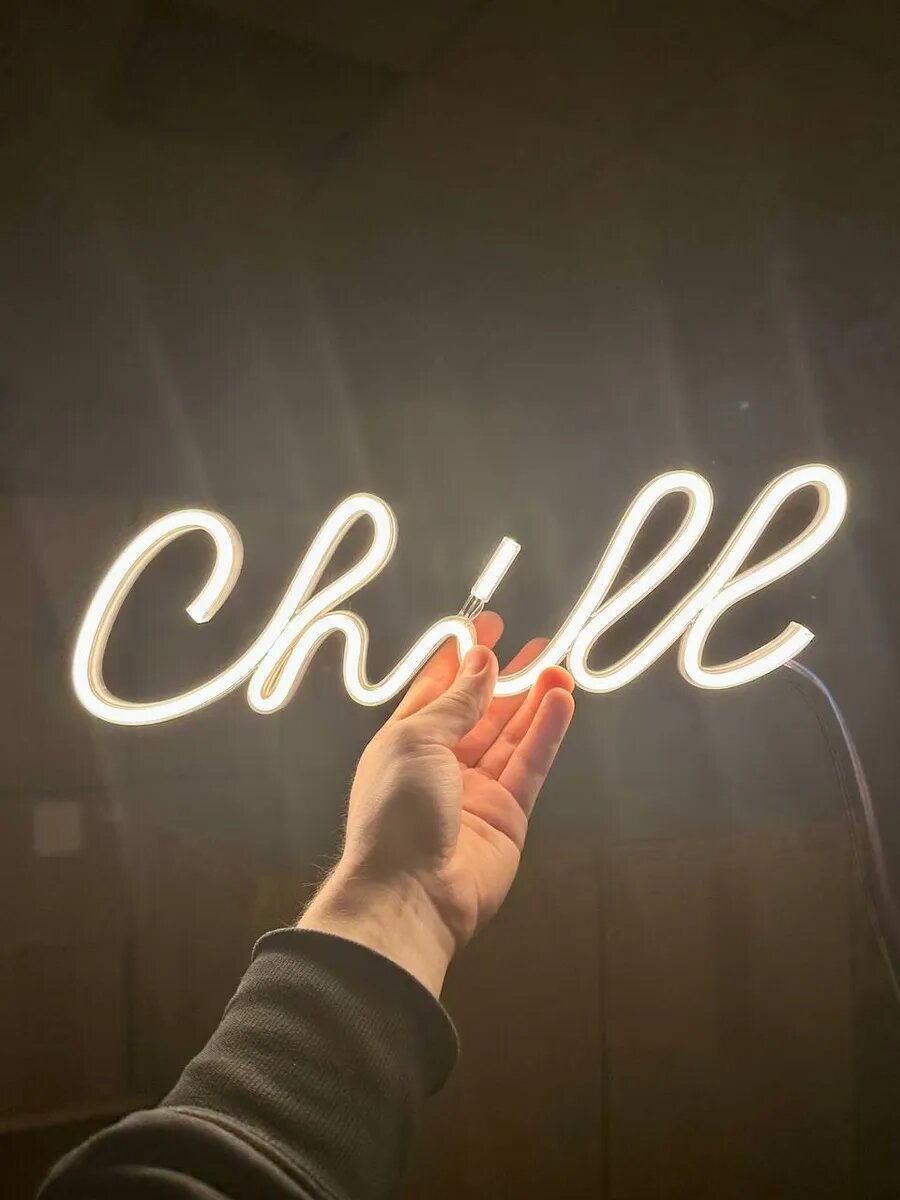 Неоновый светильник для дома в виде надписи "Chill" — это яркий и оригинальный элемент декора, который добавит позитива и радости в ваш интерьер. Светильник выполнен из высококачественных материалов и имеет прочную конструкцию, что гарантирует его долговечность и надёжность. Светильник легко крепится на стену двусторонней клейкой лентой (лента в комплекте), устанавливается на полку, не требуются специальные навыки или инструменты. Яркость регулируется с помощью пульта.