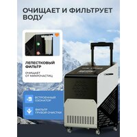 Не нужно больше никакого льда, когда есть наш Чиллер Ледовик. Чиллер охлаждает воду до 3 градусов всего за 5 часов и работает только на холод. Мощность устройства 0,8 л. с. Наш технологичный чиллер имеет мобильное приложение, с помощью которого вы всегда можете включить его удаленно, а также запрограммировать его на включение на то время, которое вам удобно. В чиллере есть два внешних фильтра очистки и встроенный озонатор, сохраняющий воду в ванне чистой! Более того мы предоставляем бесхлорную химию для поддержания воды еще дольше и чище. Для чего нужно использовать Чиллер Ледовик? 1 Метаболизм Погружение в холодную воду запускает термогенез — организм начинает активно сжигать калории, чтобы согреться. Это помогает ускорить обмен веществ и поддерживать здоровый вес. 2 Ментальное здоровье Холод стимулирует выработку эндорфинов и дофамина, что помогает снизить уровень стресса и улучшить настроение. Регулярные ледяные ванны — это своеобразная тренировка для ума, укрепляющая вашу устойчивость к стрессу. 3 Сон Погружение в холодную воду перед сном помогает снизить температуру тела и расслабить мышцы, что способствует глубокому и качественному сну. 4 Поддержка иммунной системы Холодовые воздействия стимулируют кровообращение и укрепляют защитные функции организма. Это улучшает вашу способность противостоять вирусам и инфекциям. 5 Фокус и энергия Ледяная ванна бодрит и повышает концентрацию. Контраст между холодом и согреванием после процедуры даёт мощный заряд энергии, помогая быть продуктивным на протяжении всего дня. Используйте Чиллер Ледовик с любой армированной ванной Про серии. Мы даём 1 год гарантии на все наши устройства, и любую покупку вы можете совершить в рассрочку. Технические характеристики: Длина 53,5 см x ширина 33 см x высота 60,5 см Вес 32 кг Мощность охлаждения 1850 Вт Потребление 730 Вт Длина шлангов для подключения 2 метра Длина шнура электропитания 1,5 метра