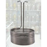 Чиллер (охладитель) 8 метров нужен для быстрого понижения температуры сусла после кипячения. Скорость охлаждения сусла серьезно влияет на возможность размножения вредных микроорганизмов – чем быстрее вы это сделаете, тем меньше у бактерий шансов. Процесс пивоварения непрост и каждому этапу его изготовления уделяется особое внимание. Перед тем, как добавить дрожжи в сусло, его необходимо остудить до определенной температуры (+20 градусов), поскольку при более высоких температурах они погибают. Именно на этапе охлаждения пива и применяется чиллер. С таким устройством можно не волноваться за санитарную безопасность жидкости. Подключение производится посредством силиконового или пвх шланга - подключаем холодную воду, а выход выводим на слив. Чиллер позволяет быстро охладить 20-40л сусла за считанные минуты. На этапе остывания в жидкости может появляться диметилсульфид – сладковатое вещество, способное испортить вкус пива. При быстром снижении температуры вероятность содержания этого вещества сводится к минимуму. Все чиллеры изготовлены из пищевой нержавеющей стали марки AISI 304, имеют диаметр трубки 8 мм и толщину стенки 0,5 мм, что обеспечивает отличную теплопередачу от жидкости охлаждения к жидкости охлаждаемой. Характеристики чиллера: Длина трубки - 8 метров; Толщина стенки трубки - 0,5 мм; Диаметр трубки внешний - 8 мм; Общая высота чиллера - 37 см в сложенном виде; Количество витков спирали - 13; Диаметр витков - 19 см; Высота витков спирали - 12 см в сложенном виде; Марка стали - AISI 304.