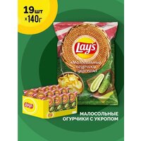 Чипсы картофельные Lay’s Малосольные огурчики с укропом, 19 упаковок по 140 г: сравнение цен, характеристики, фото, актуальное наличие и цены.