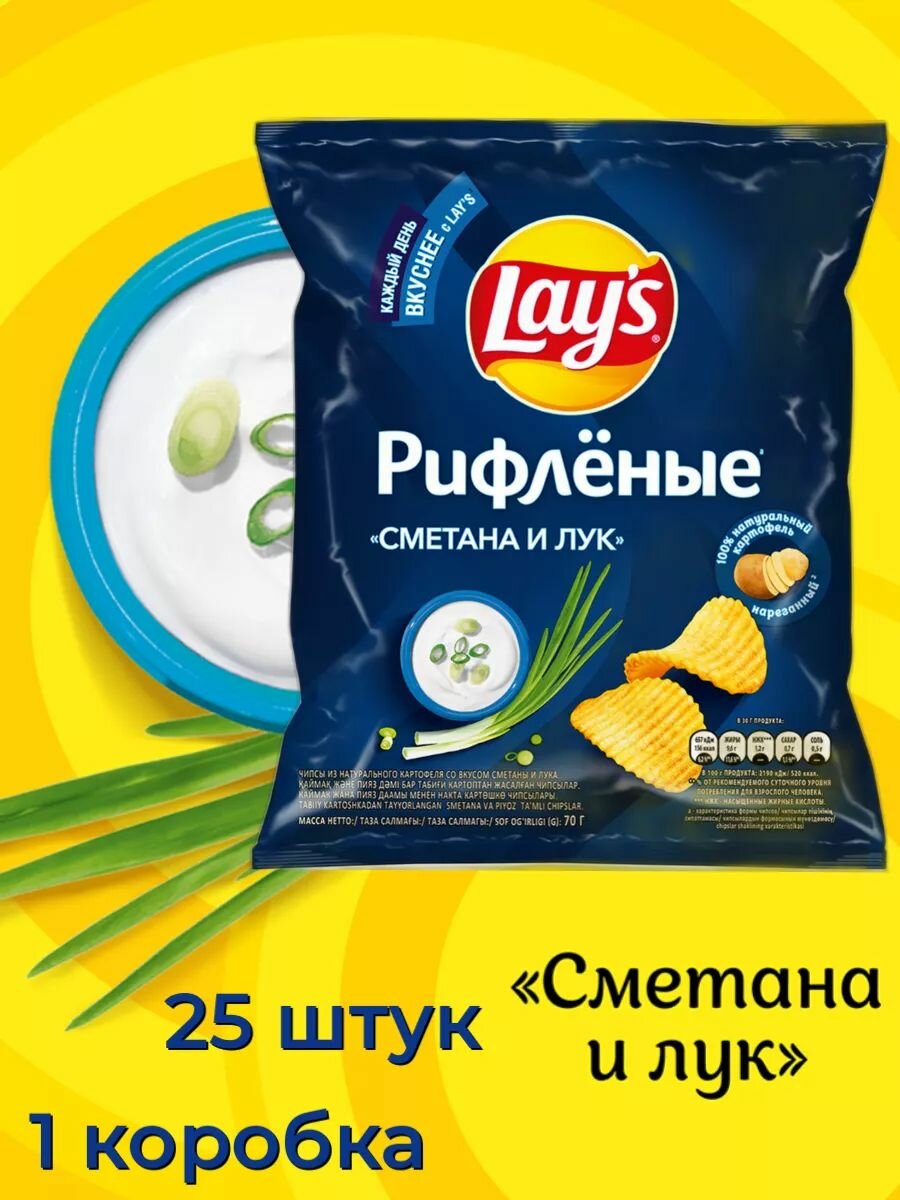 Купить Чипсы картофельные Lay’s Сметана и Лук, рифлёные, 25 шт. по 70г с доставкой по всей России. Чипсы картофельные Lay’s Сметана и Лук, рифлёные, 25 шт. по 70г: сравнение цен, характеристики, фото, актуальное наличие и цены.